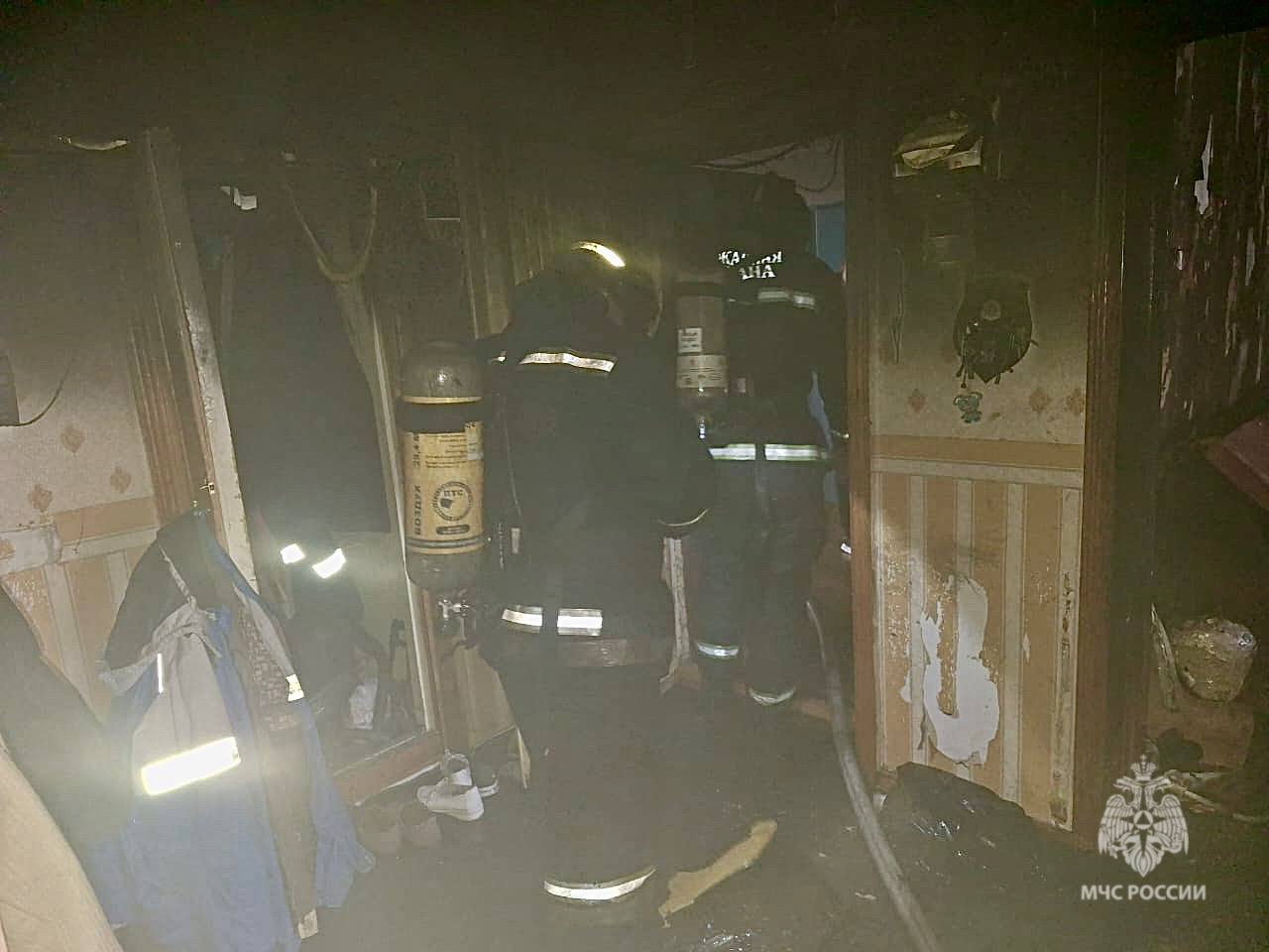 Прибывшие пожарные оперативно приступили к тушению и спасли еще двоих человек, которых вывели на свежий воздух при помощи маски спасаемого. 68-летнего хозяина квартиры, надышавшегося продуктами горения передали в руки медиков, его госпитализировали в местную больницу.