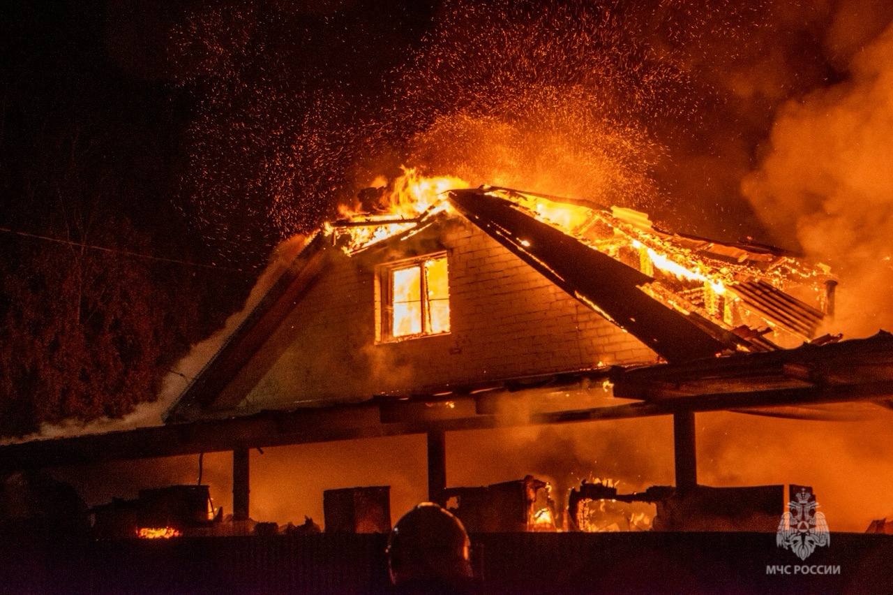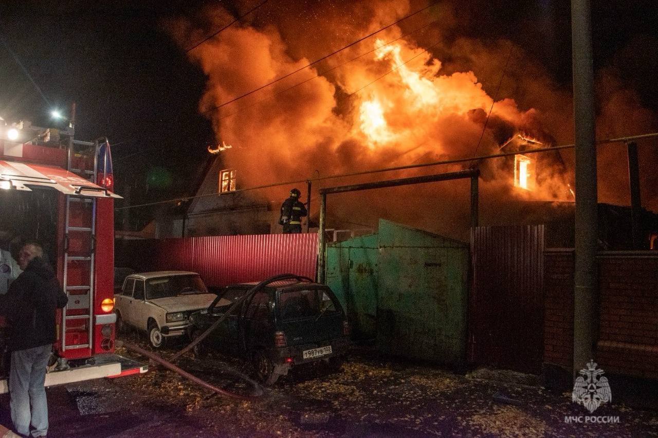 Уже через 4 минуты после вызова первые пожарные МЧС России были на месте и приступили к тушению. На улице Пушкина горел кирпичный дом размером 20х15 метров и автомобили под навесом.