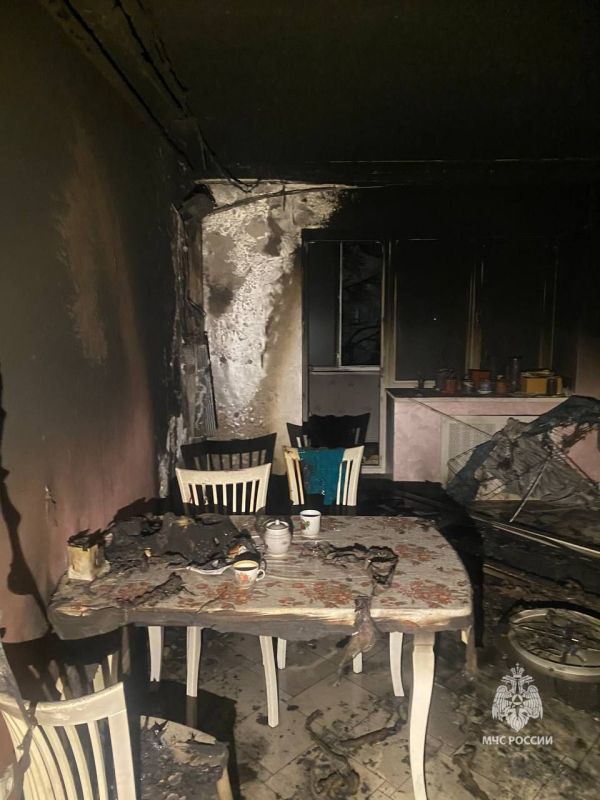 По прибытии пожарных подразделений происходило горение домашнего имущества в квартире на втором этаже. Пожарные МЧС России ликвидировали горение на площади 9 кв. метров.