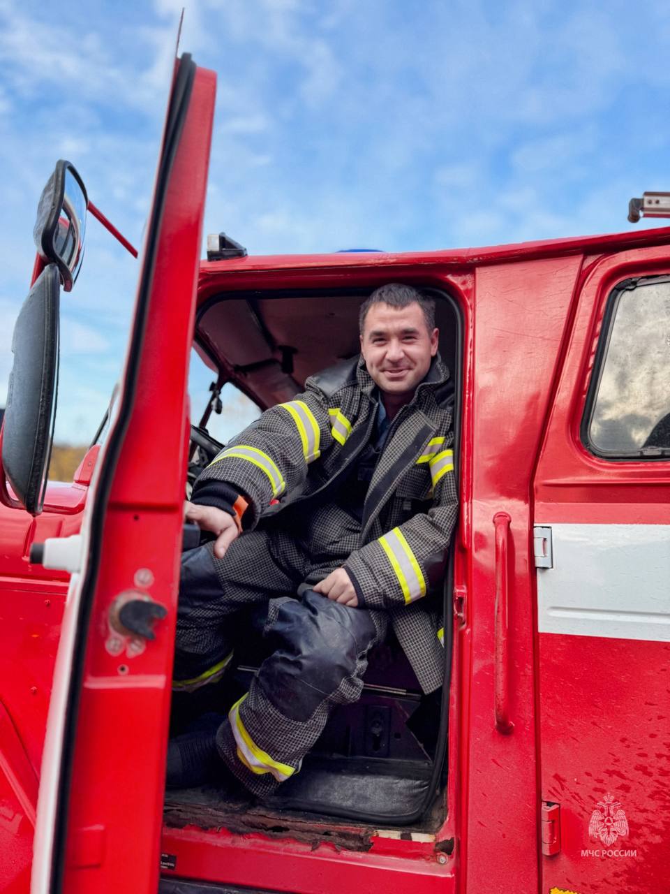 На фото водитель 7-й пожарно-спасательной части 22 пожарно-спасательного отряда Главного управления Иван Комаров.
