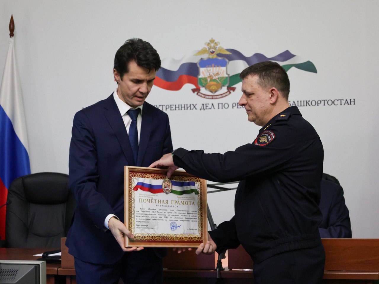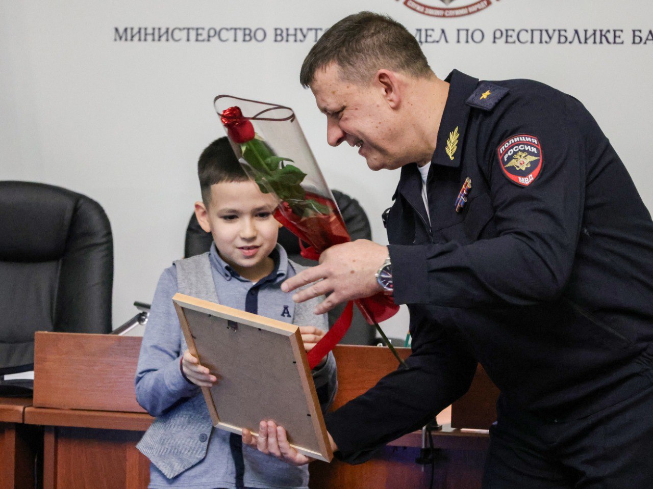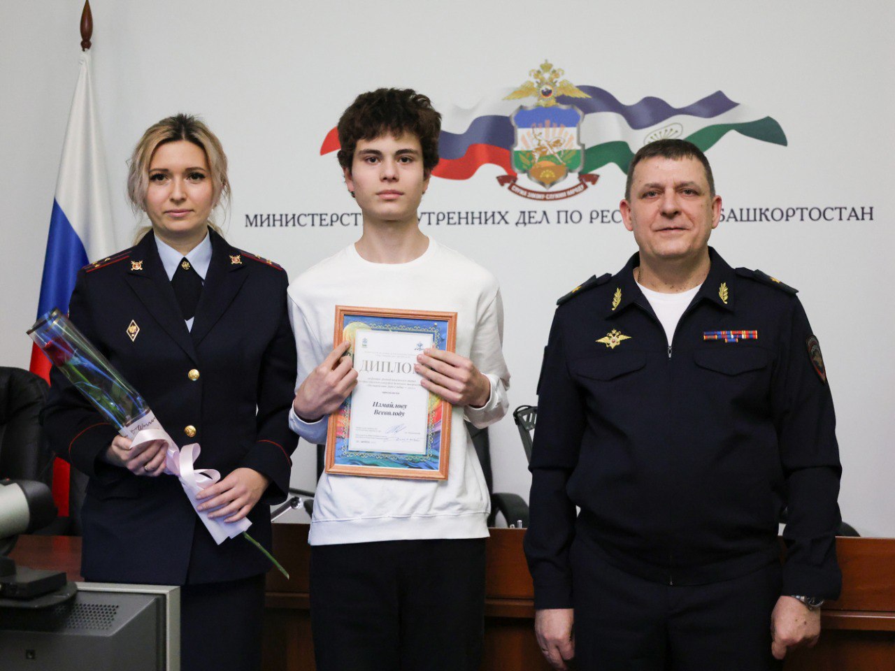 Министр внутренних дел по Республике Башкортостан генерал-майор полиции Александр Воронежский вместе с председателем Общественного совета при МВД республики Рафаилом Диваевым поздравили победителя Всероссийского конкурса детского творчества «Мои родители работают в полиции» Даната Халикова, сына инспектора Полка ДПС ГИБДД УМВД России по г. Уфе старшего лейтенанта полиции Руслана Халикова. По решению Общественного совета при МВД России под председательством Анатолия Кучерены его работа под названием «Мой папа» была признана одной из лучших в своей возрастной категории. Победитель получил ценный подарок из Москвы, а также призы от регионального Общественного совета.