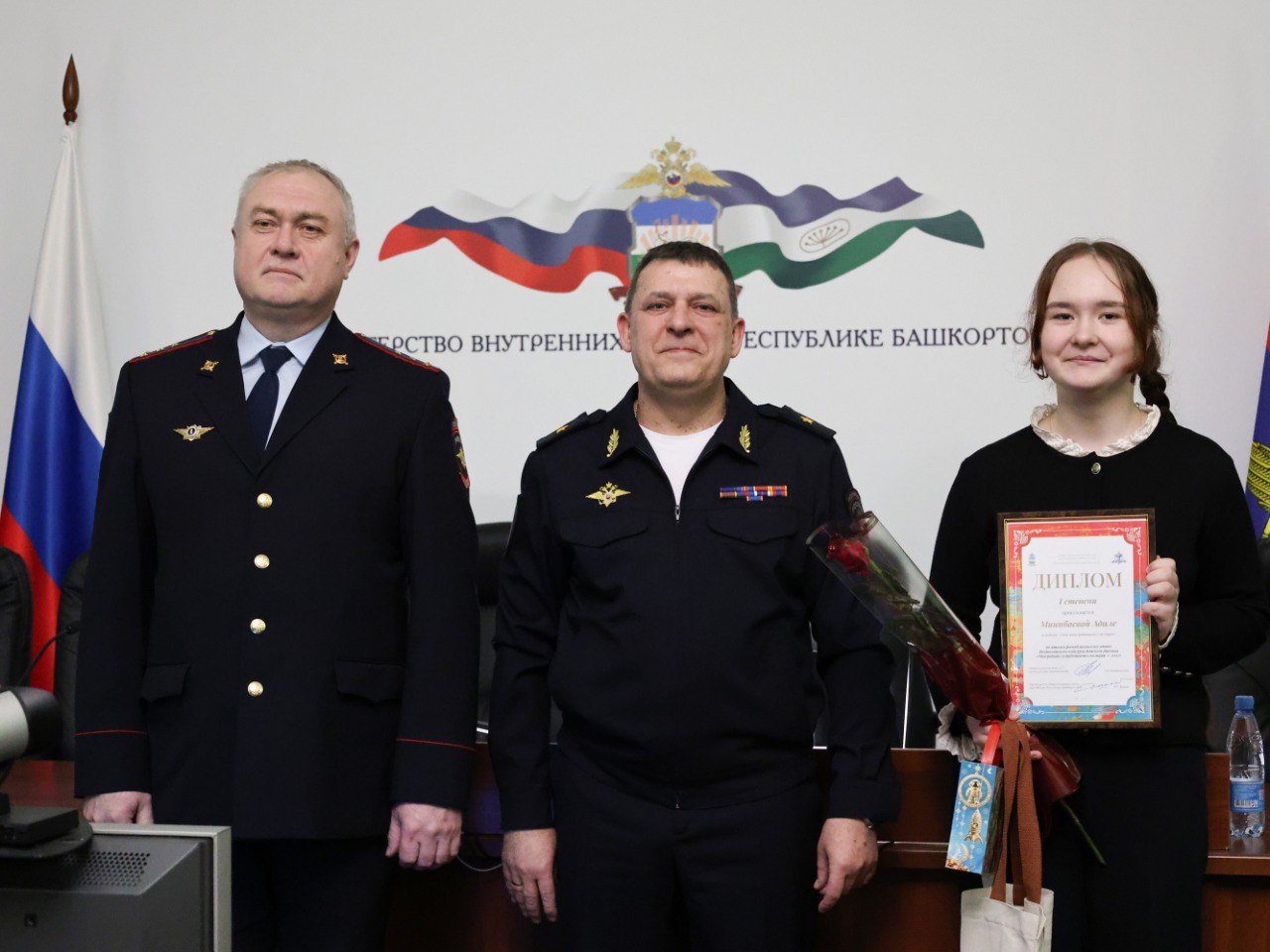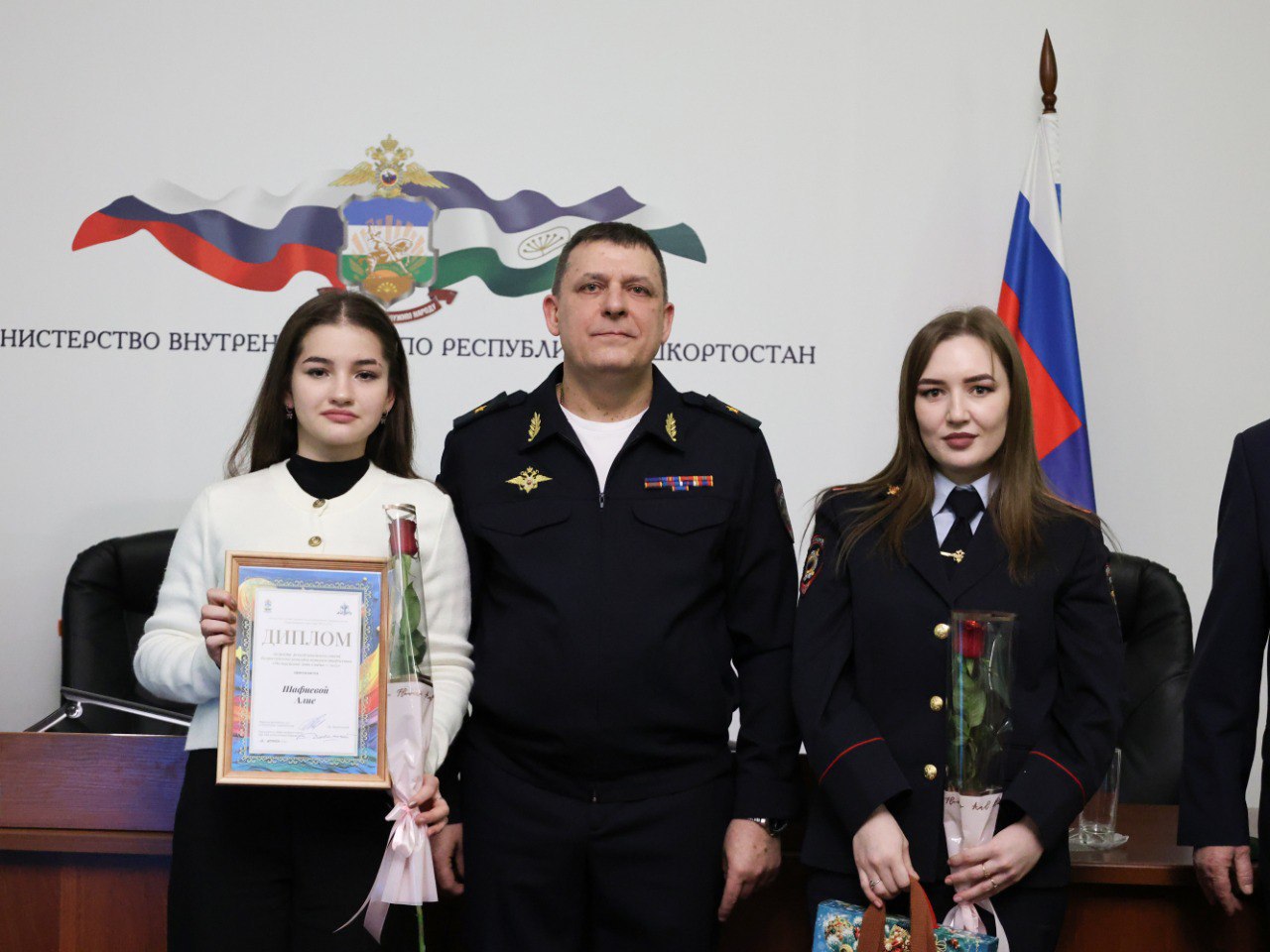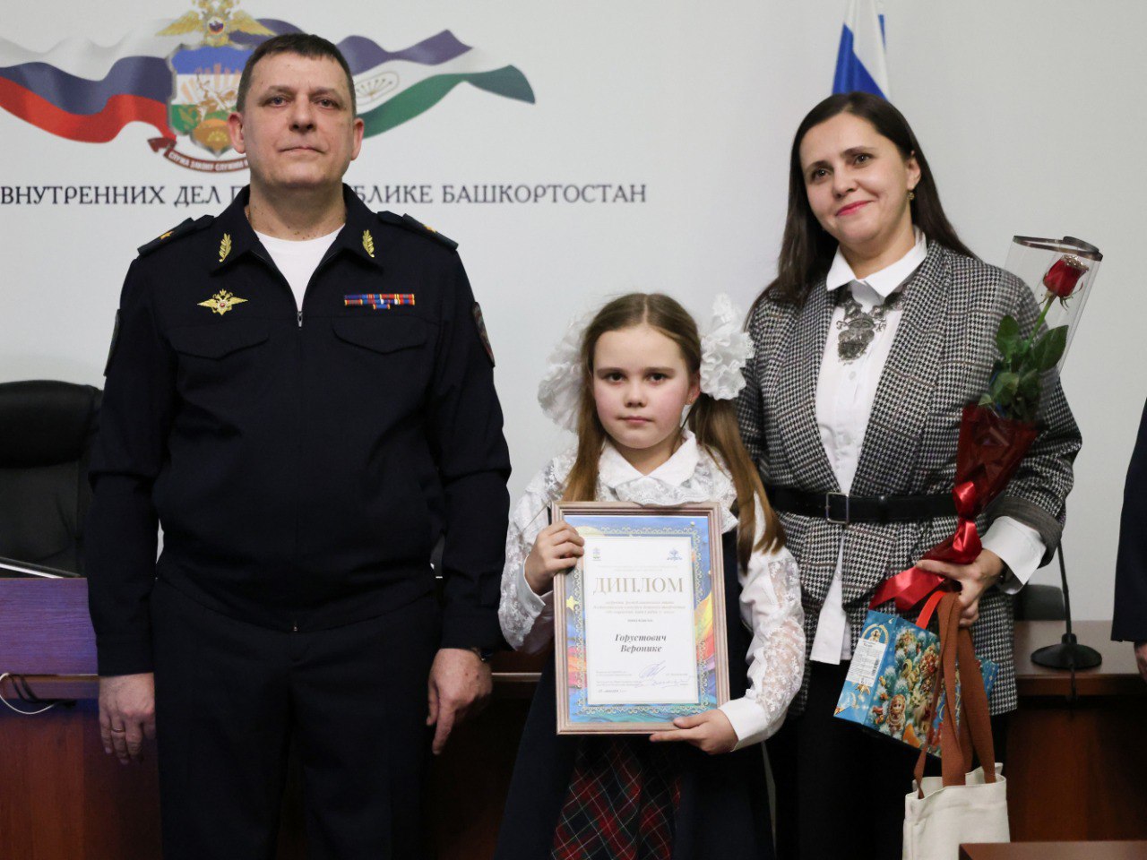 Дипломы и подарки также вручили победителям регионального этапа конкурса творческих детских работ «Полицейский Дядя Степа»: Софии Пшеничниковой из Дуванского района, а также талантливым детям из г. Сибая: Полине Малыгиной, Залии Валитовой, Ангелине Скоповой, которые не смогли приехать на награждение и получат свои подарки доставкой полицейского Деда Мороза. В своих работах ребята отобразили внешний облик современного полицейского.