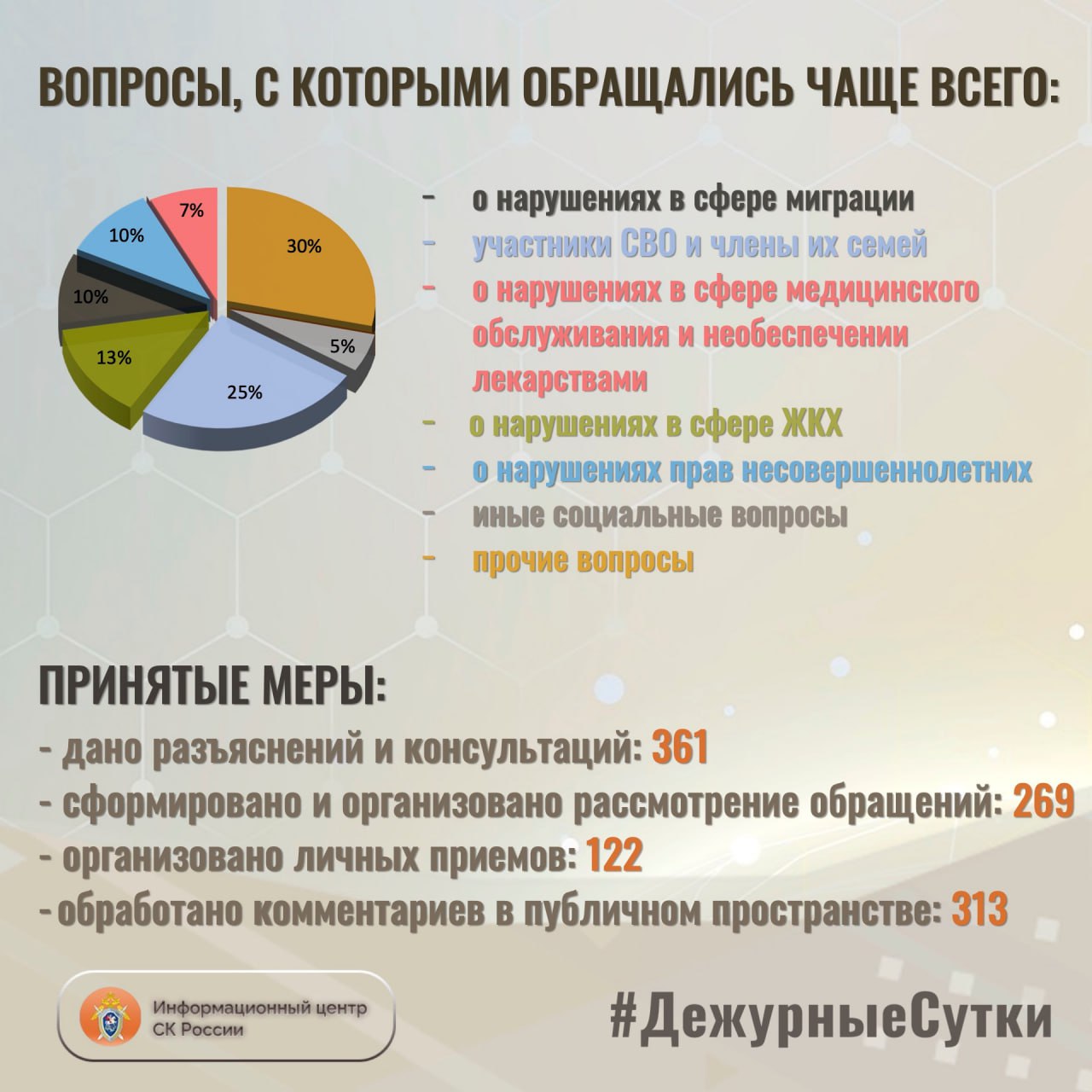 В Информационный центр СК России за прошедшие сутки всего обратилось граждан: 6 3 0