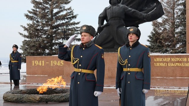 Генерал-майор полиции Александр Воронежский возложил цветы к Вечному огню в парке Победы и к памятнику Герою России генерал-майору Минигали Шаймуратову.