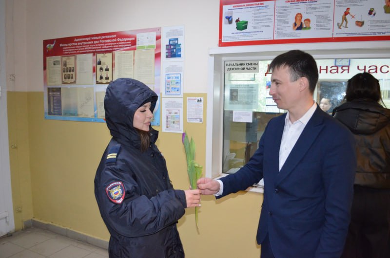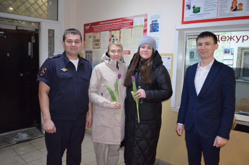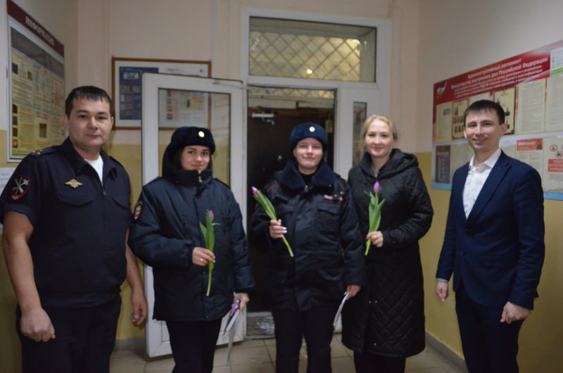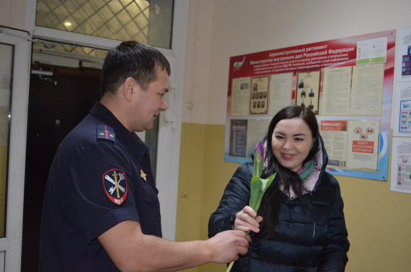 Сегодня утром сотрудники мужского пола отдела МВД России по Туймазинскому району встретили коллег-женщин с милыми тюльпанами и теплыми поздравлениями. Этот приятный сюрприз стал частью праздничных мероприятий, приуроченных к Международному женскому дню, отмечаемому ежегодно 8 марта.