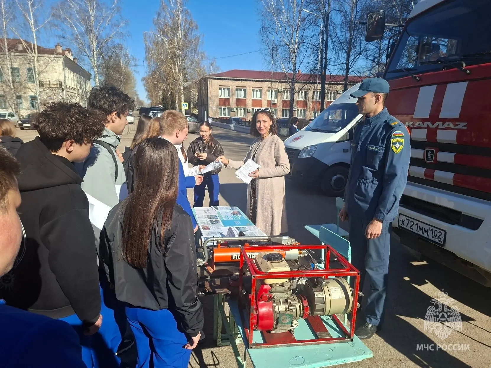 Самым зрелищным моментом мероприятия стала демонстрация аварийно-спасательного инструмента, а именно гидравлических ножниц «Спрут» и бензорезов. Желающие смогли примерить боевую одежду пожарного и почувствовать на себе немалый вес снаряжения (около 30 кг). Также специалисты провели краткий ликбез по правилам оказания первой помощи пострадавшим.