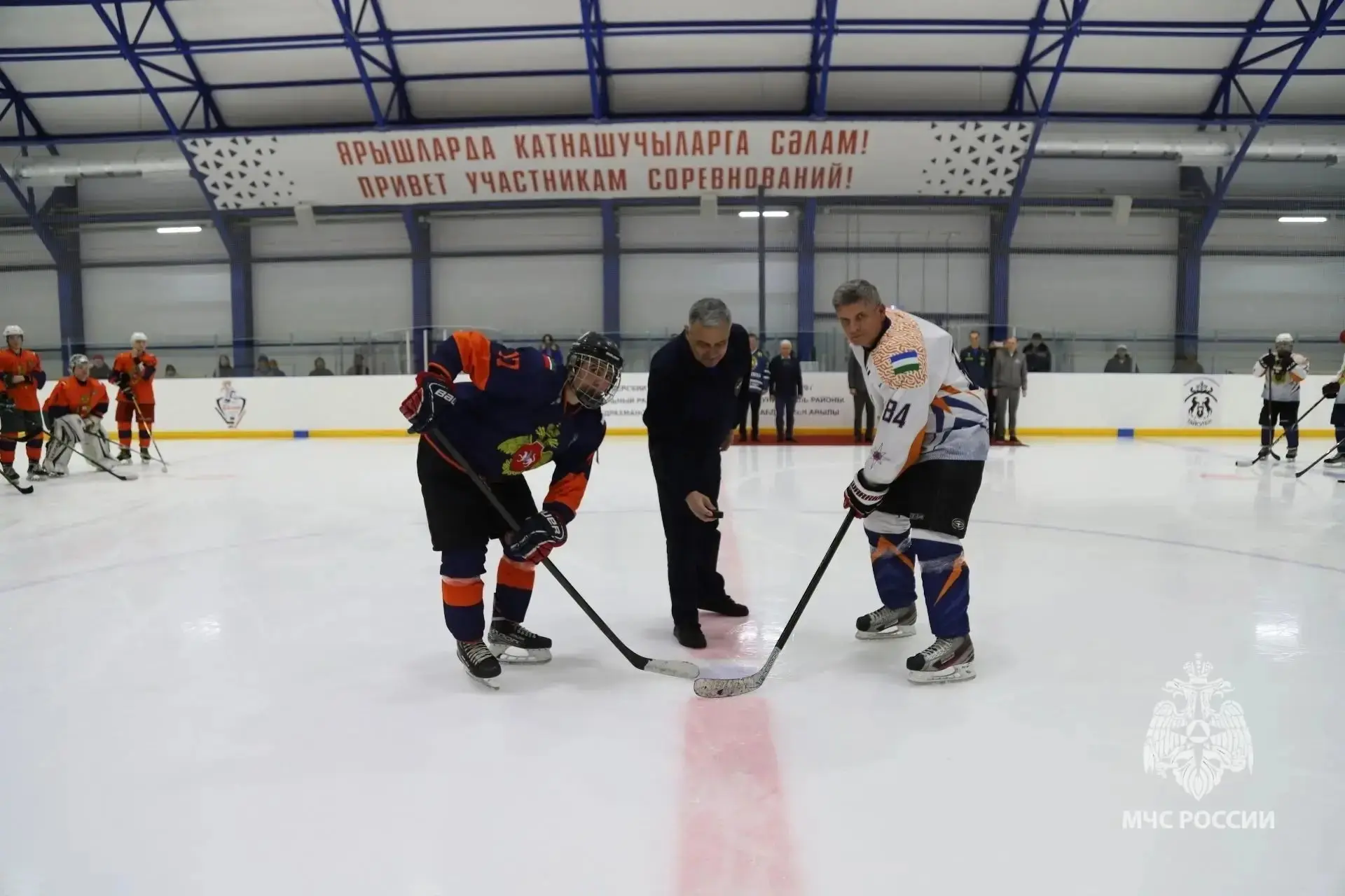 Символическое вбрасывание перед началом соревнования сделал начальник главного управления МЧС России по Республике Татарстан Ирек Кадамов.