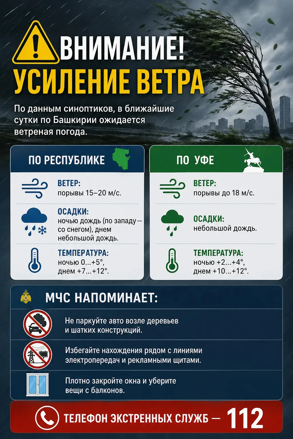 По данным синоптиков, в ближайшие сутки по Башкирии ожидается ветреная погода.
