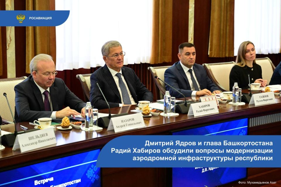 Премьер-министр Правительства Республики Башкортостан Андрей Назаров провел рабочую встречу с руководителем Федерального агентства воздушного транспорта Дмитрием Ядровым. Глава ведомства прибыл в столицу Башкортостана и осмотрел ключевые...