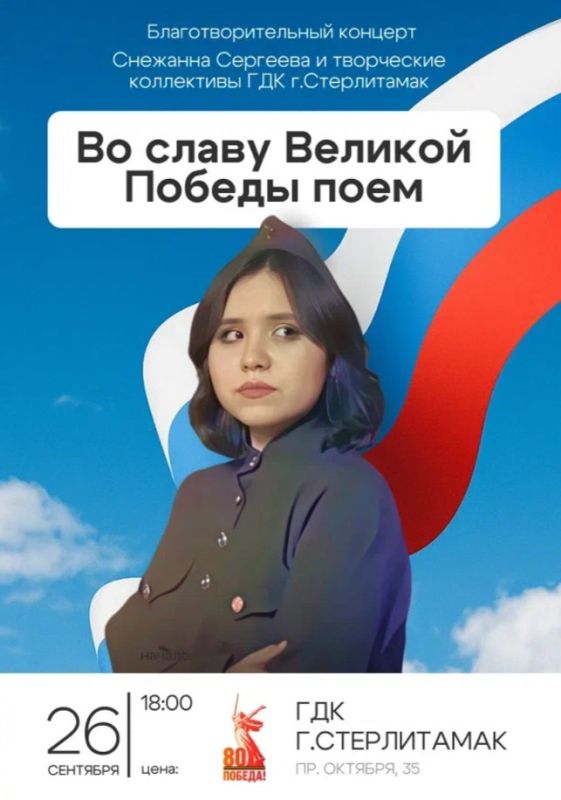 26 сентября в Городском дворце культуры (пр. Октября, 35)состоится патриотический благотворительный концерт "Во славу Великой Победы поём!". На сцене выступит Снежанна Сергеева с участием коллективов СГДК.Снежанна...