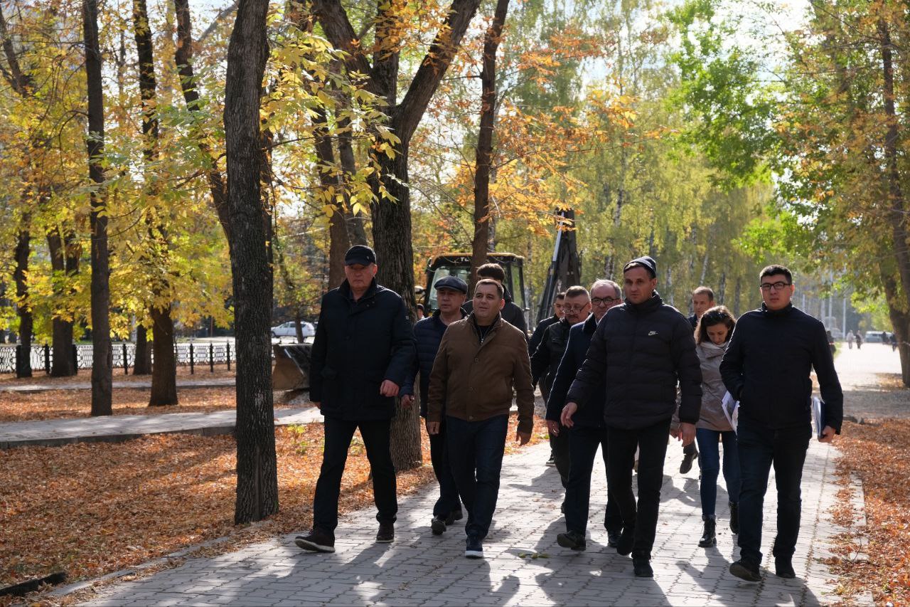 На пр.Ленина подрядная организация выполнила демонтаж бордюрного камня и брусчатки, готовит основания под детские площадки и малые архитектурные формы. Рустем Фаритович поручил ускориться по срокам выполнения работ, привести в порядок существующие на аллее МАФы. Также на аллее, которую благоустраивают от кольца Вечного огня до перекрёстка с ул.Голикова, должны появится новые скамейки, освещение, велопарковка, детские городки и новые арт-объекты.