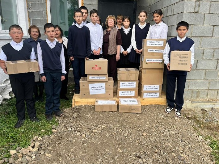 В администрации района особо отметили вклад детей и учителей средней школы села Амангильдино. Они отправили более ста банок вкуснейших домашних супов — щей, борщей и рассольников, талкан и чак-чак, а также собрали наборы с личными принадлежностями для каждого бойца индивидуально.
