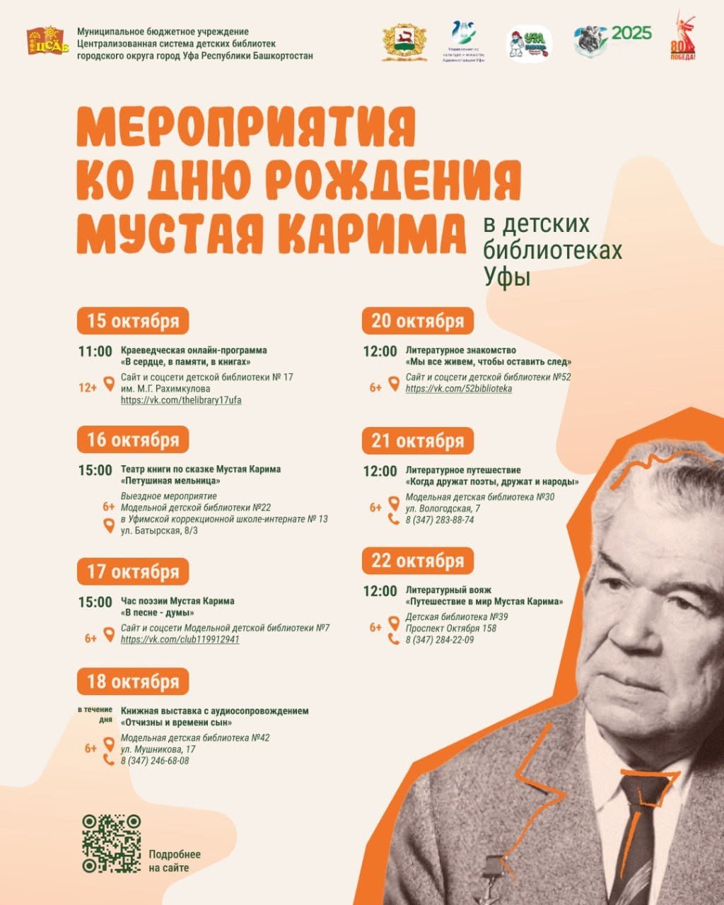 С 15 по 22 октября: мероприятия, посвящённые дню рождения народного поэта Республики Башкортостан Мустая Карима