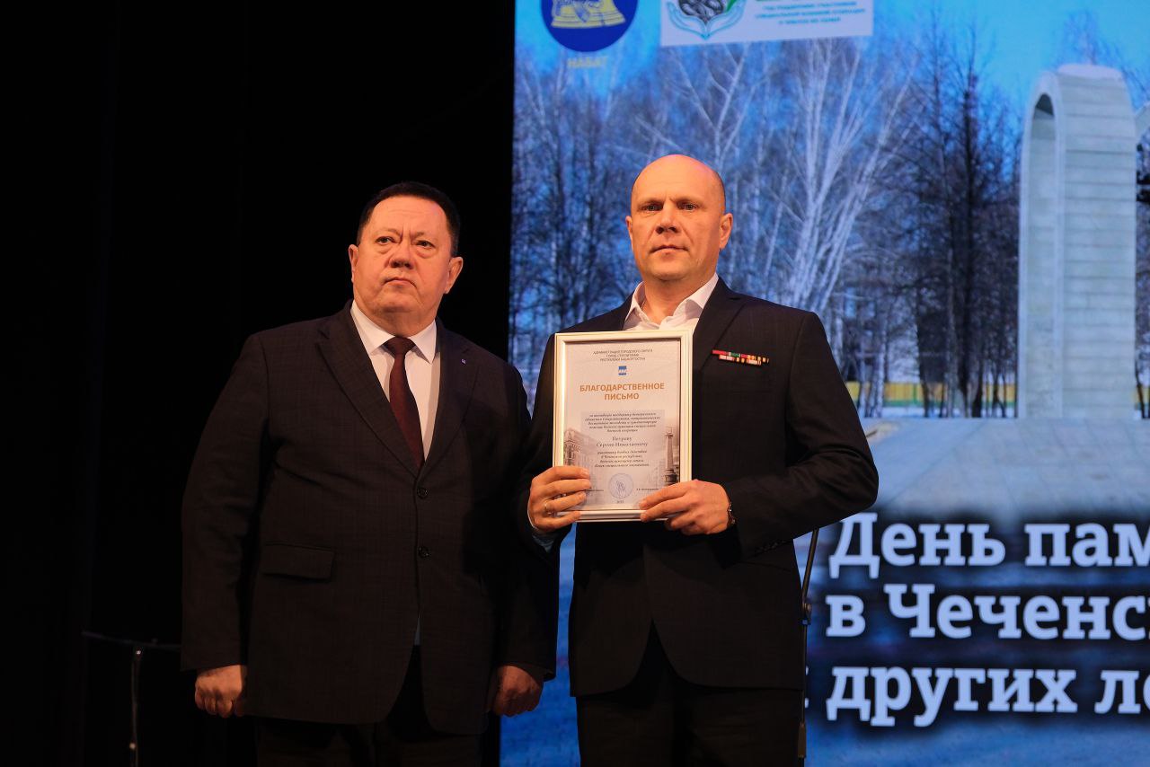 -Сегодня мы вспоминаем тех, кто погиб в Чеченской войне и других локальных конфликтах, – сказал он. – С особым трепетом мы вспоминаем первого руководителя общественной организации «Набат» Александра Анатольевича Подобного, который стал примером мужества, человечности и чести. Сегодня его дело с достоинством продолжает нынешний руководитель Ильдус Маняпов. Он активно поддерживает бойцов специальной военной операции и не забывает семьи погибших воинов в Чечне.