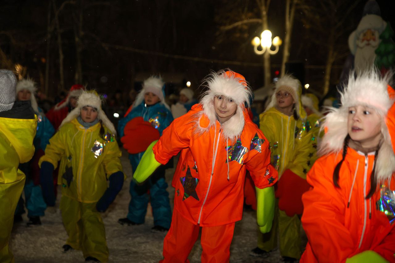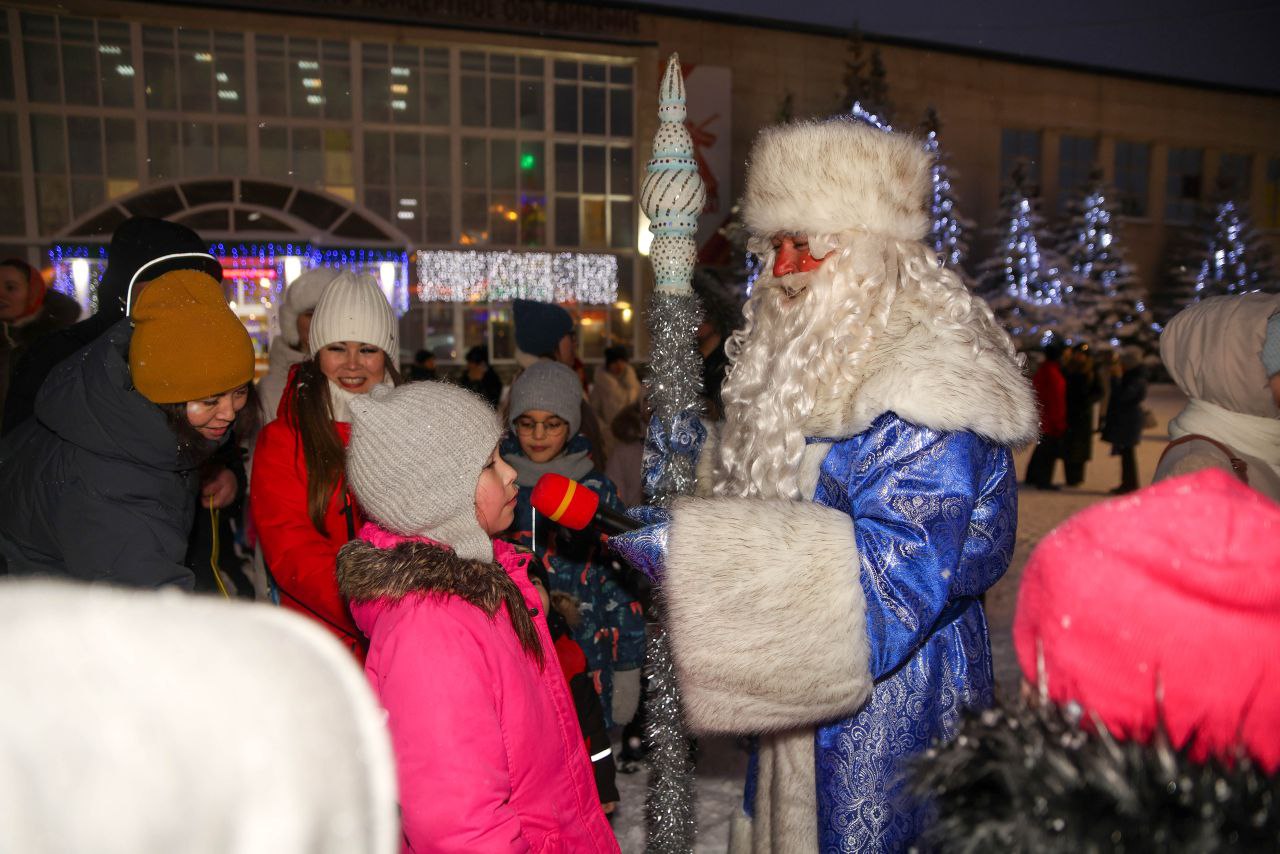На каждой площадке гостей ждала насыщенная праздничная программа. Сказочные персонажи вовлекали гостей в зажигательные танцы, весёлые игры и песни. Ярко выступили творческие коллективы города и студенты колледжа культуры и искусства. Конечно, особый восторг у юных жителей и их родителей вызвало появление главных символов Нового года – Деда Мороза и Снегурочки. Они поздравили всех с наступающим праздником, послушали стихи, которые подготовили дети и подарили сладкие угощения.