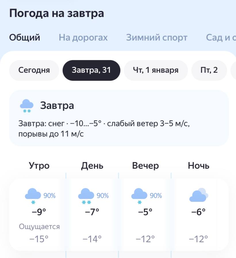 Погода 31 декабря в Уфе будет 8 из 10: никакого солнышка нам не видать, зато будет тепло и снежно