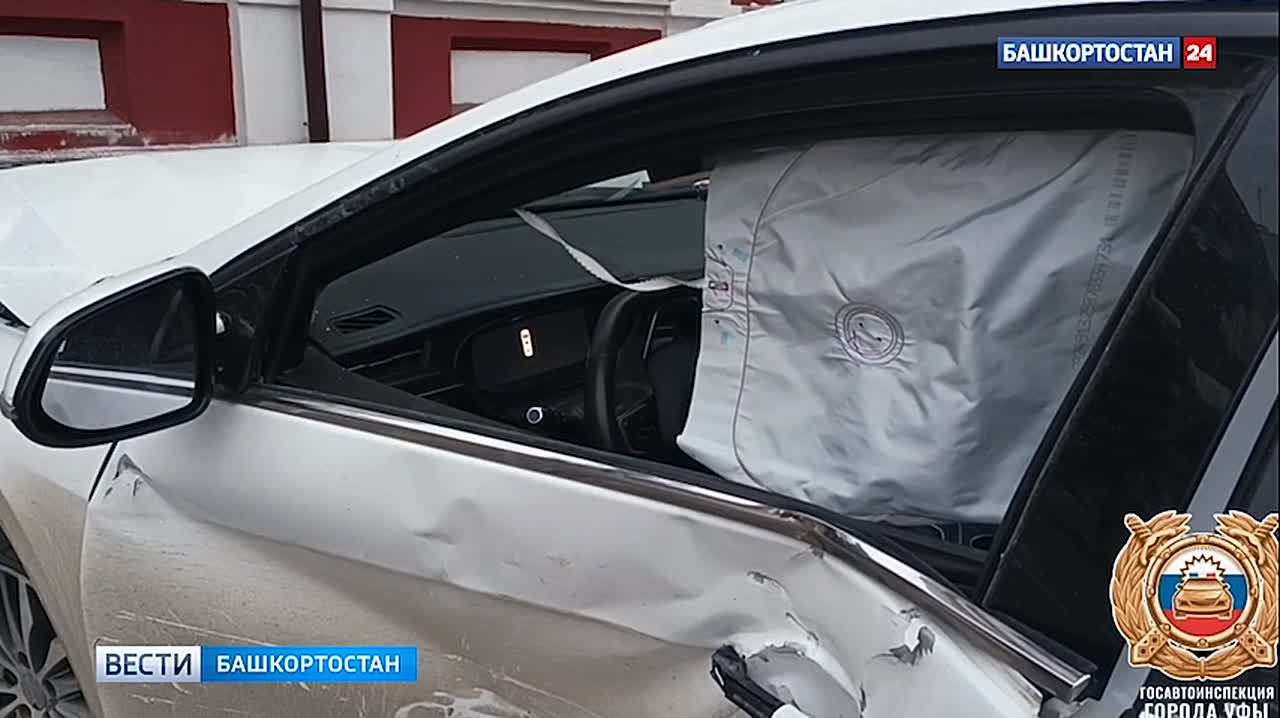 В Ленинском районе Уфы иномарку после столкновения отбросило на пешехода