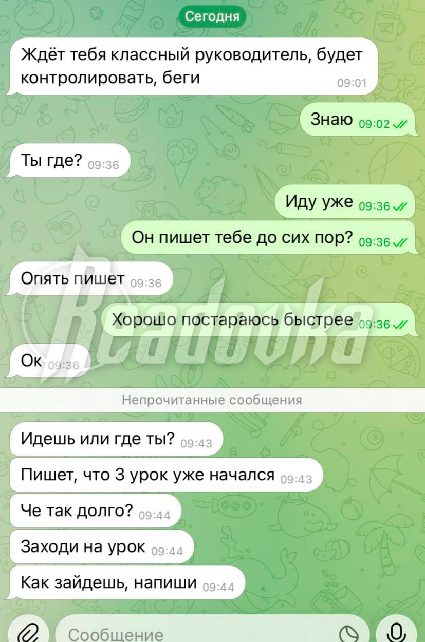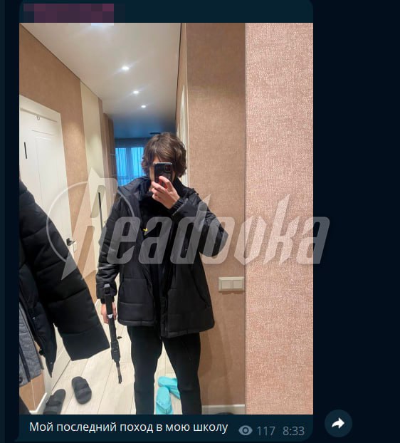 СМИ также публикуют фото предполагаемого нападавшего — он вел свой Telegram-канал, где публиковал фото с травматическим пистолетом и скриншоты переписок. На одной из них парень будто ведет переписку с кем-то из школы. Ему пишут, чтобы он быстрее заходил на урок.
