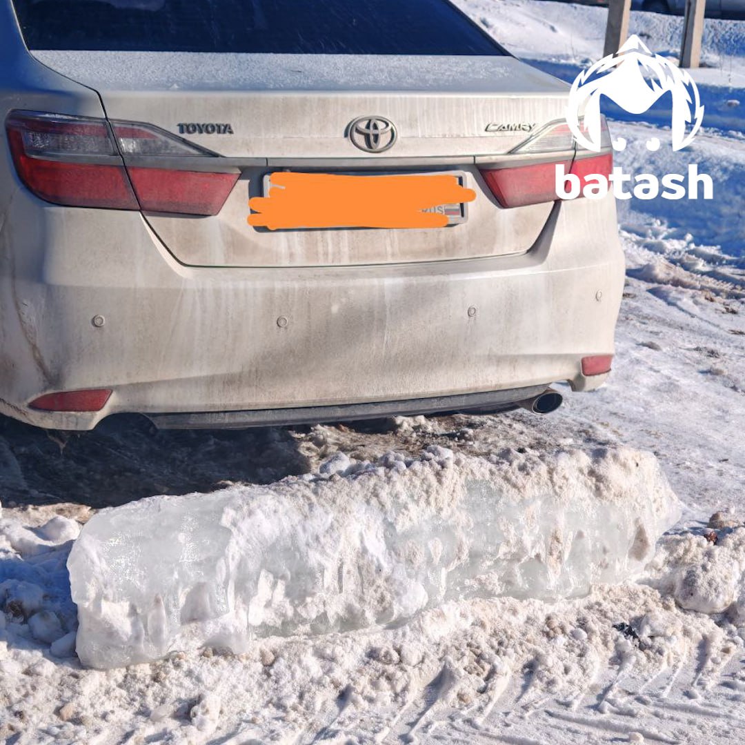 Хозяйка "Тойоты" позвонила в администрацию — там сказали, что в ЖЭУ провели беседу с работниками и уберут ледышку до 23 февраля.