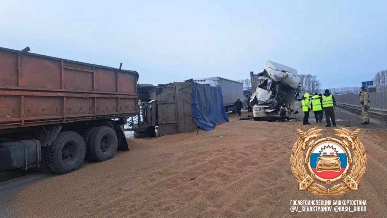 На 23 км автодороги Уфа – Оренбург водитель на «КамАЗ», движущийся из Дюртюлей в Уфу, допустил столкновение с попутным «КамАЗ».