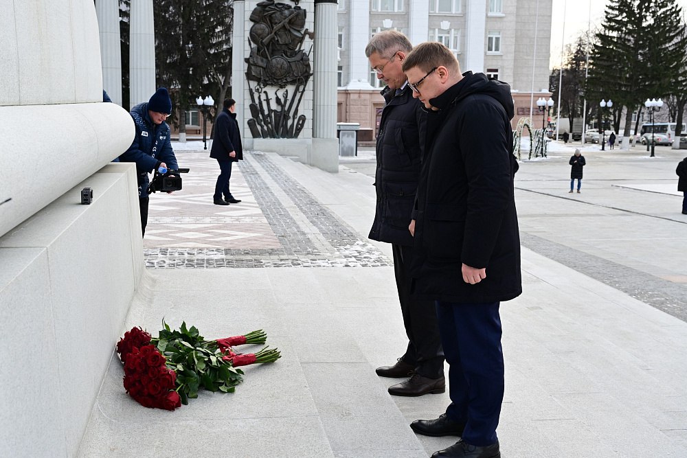 Радий Хабиров и Алексей Текслер возложили цветы к памятнику Минигали Шаймуратову