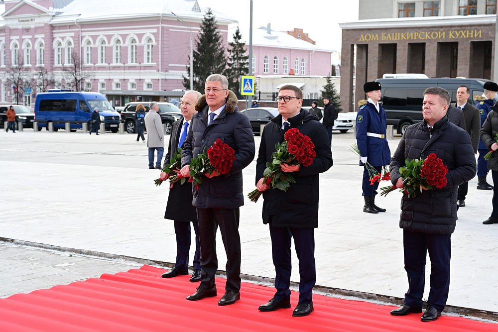 26 февраля в Уфе Глава Башкортостана Радий Хабиров и губернатор Челябинской области Алексей Текслер посетили Советскую площадь и возложили цветы к памятнику Героя России, генерал-майора Минигали Шаймуратова.
