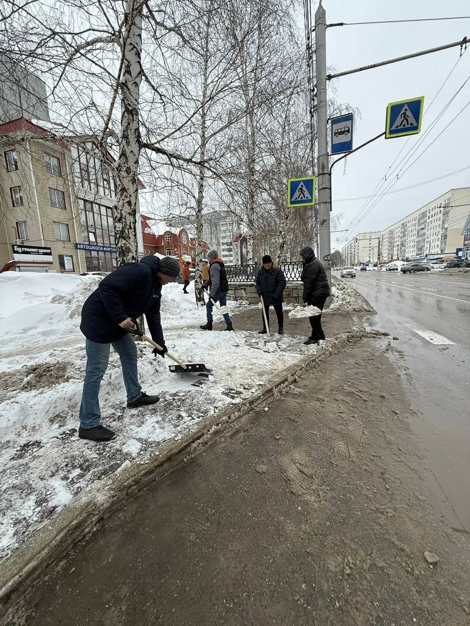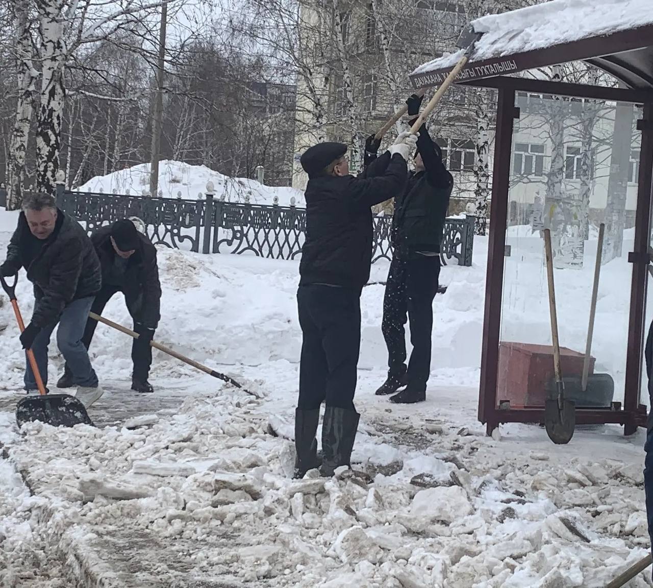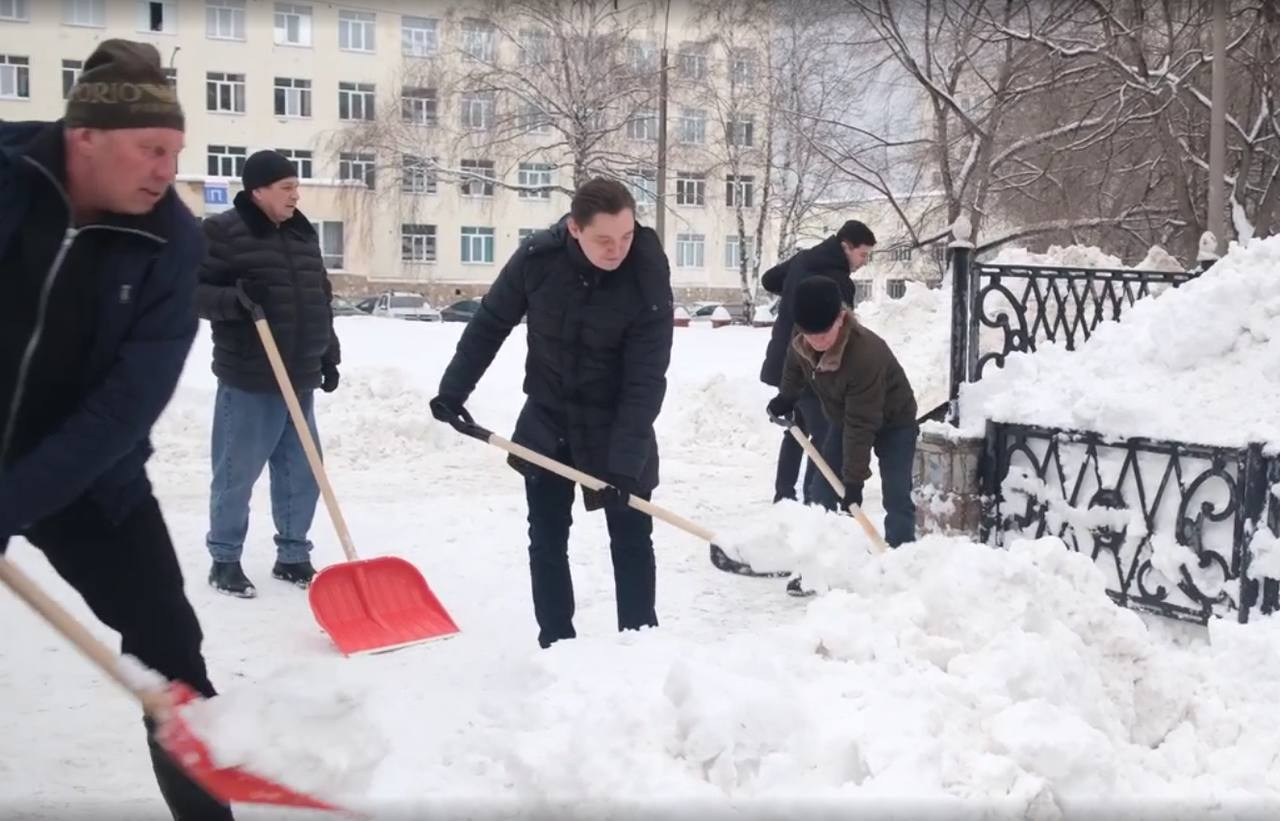 Глава администрации города Эмиль Шаймарданов совместно со своими заместителями и сотрудниками отделов администрации убирали снег на остановочных площадках, расчищали подходы к остановкам и пешеходным переходам. Также убирать снег помогали студенты вузов и ссузов, работники предприятий и учреждений города.