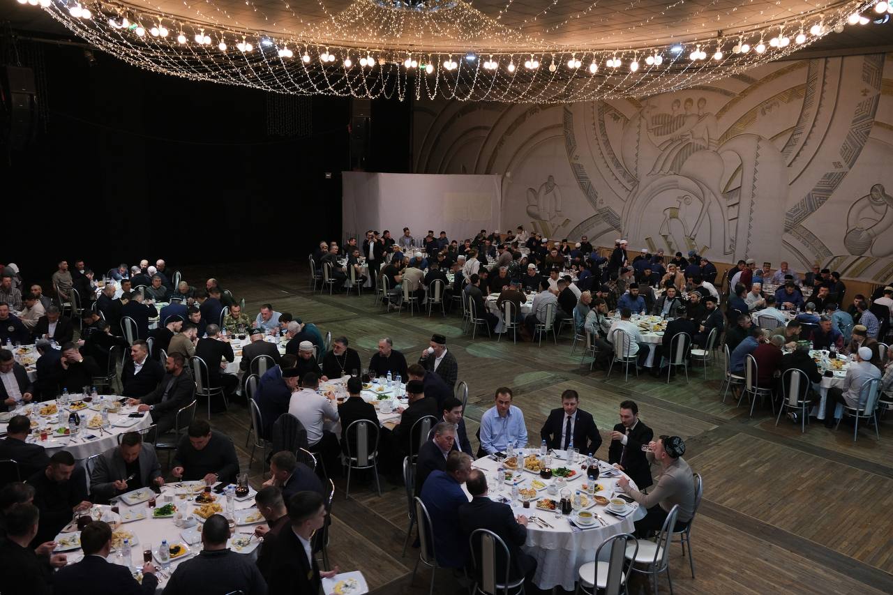 После коллективного намаза участники приступили к приёму пищи - ифтару.