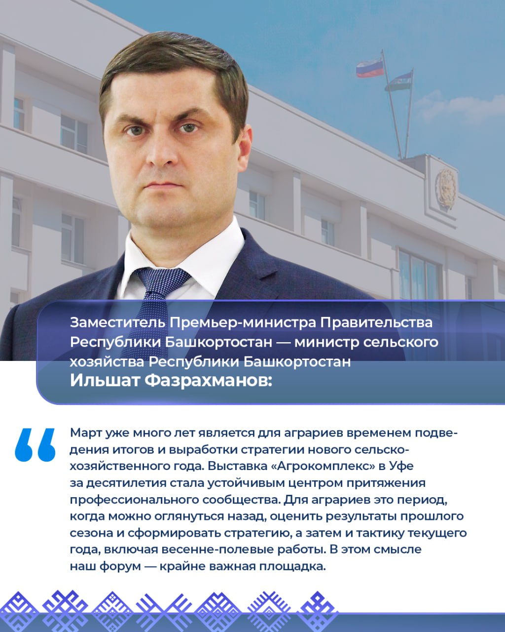 Заместитель Премьер-министра Правительства Республики Башкортостан – министр сельского хозяйства Республики Башкортостан Ильшат Фазрахманов на пресс-конференции рассказал о роли международной выставки «Агрокомплекс» для аграрного сообщества.
