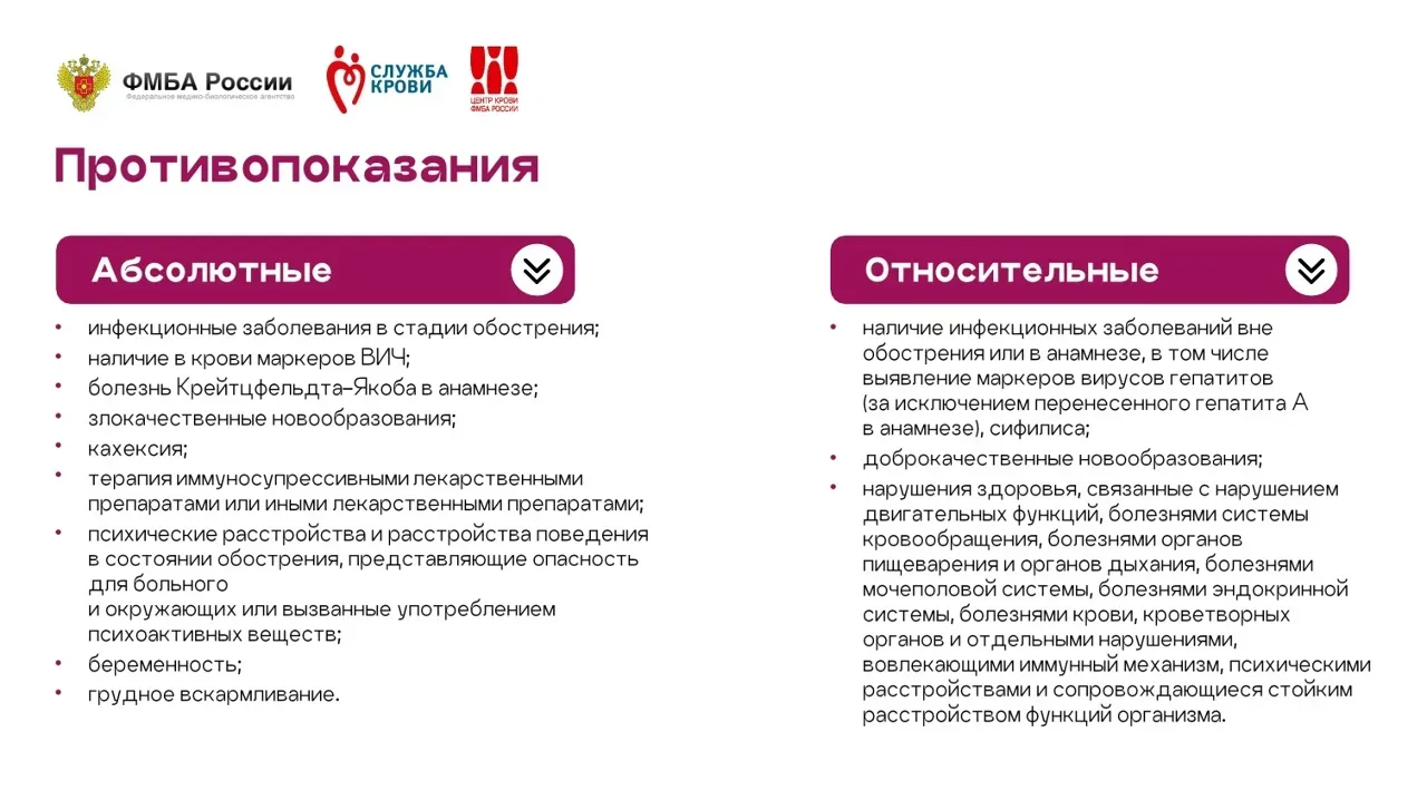 Кто может стать донором костного мозга и какие есть противопоказания - всё в карточках