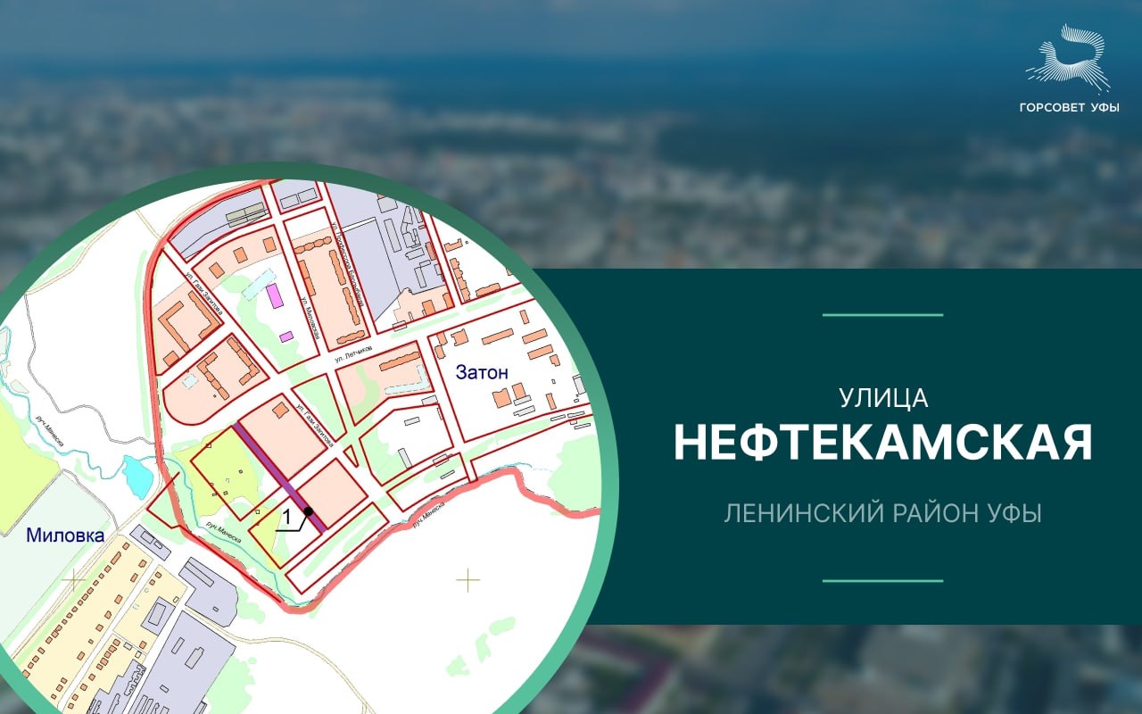 На территории района утверждены проекты планировки и межевания западной части микрорайона «Затон». Для присвоения адресов объектам недвижимости на новой улице необходимо было присвоить ей наименование. С ходатайством о присвоении уфимской улице нового наименования выступила Администрация Нефтекамска