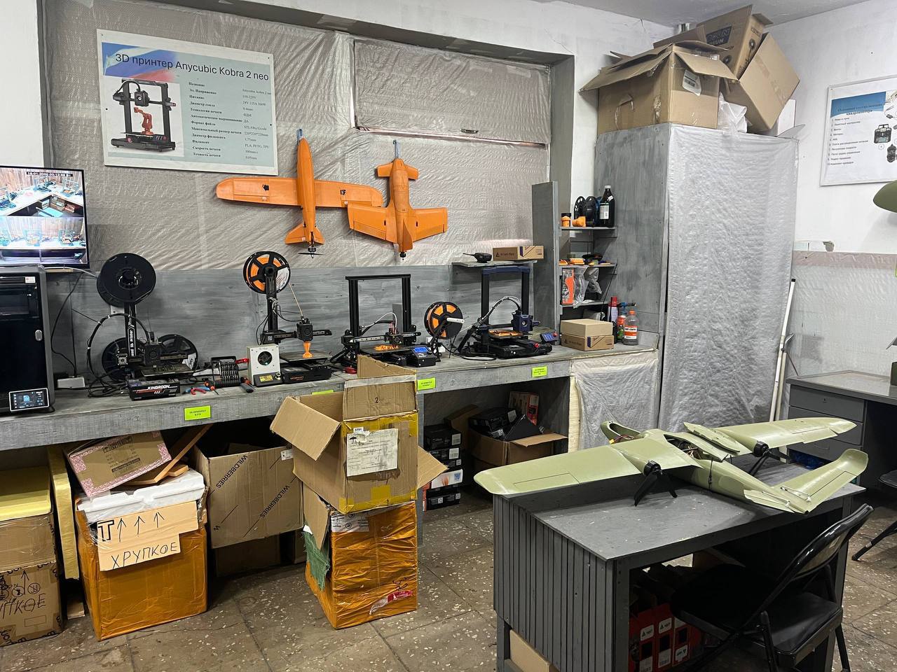 Посмотрели также базы размещения и ремонтные мастерские, где приспосабливают переданную нами технику под боевые задачи и нужды фронта. Здесь же конструируют беспилотники из деталей, напечатанных на 3D принтере.