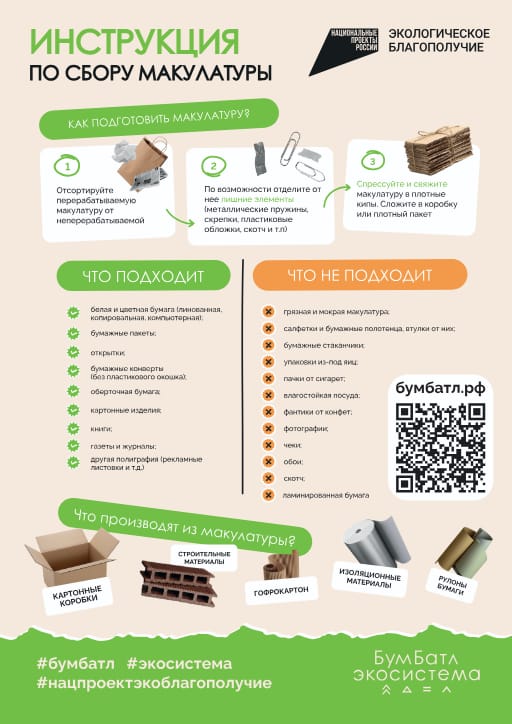Под таким девизом в Уфе активисты Башкортостанского отделения движения "Экосистема" совместно с Эколого-биологическим центром "Эколог" запускают сбор макулатуры в рамках Всероссийской акции "БумБатл" в поддержку национального проекта "Экологическое благополучие"