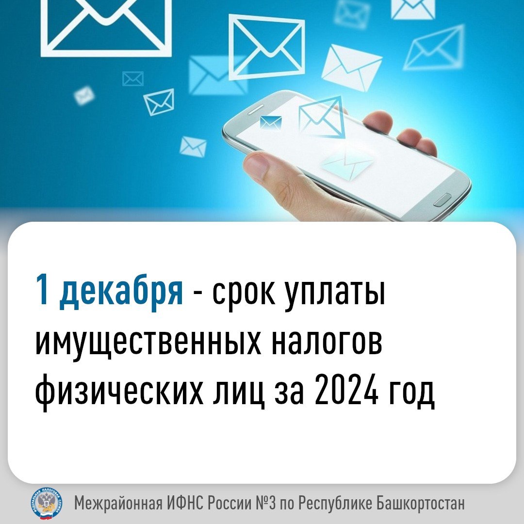 Налоговыми органами Республики Башкортостан направлены налоговые уведомления на уплату имущественных налогов физических лиц за 2024 год.