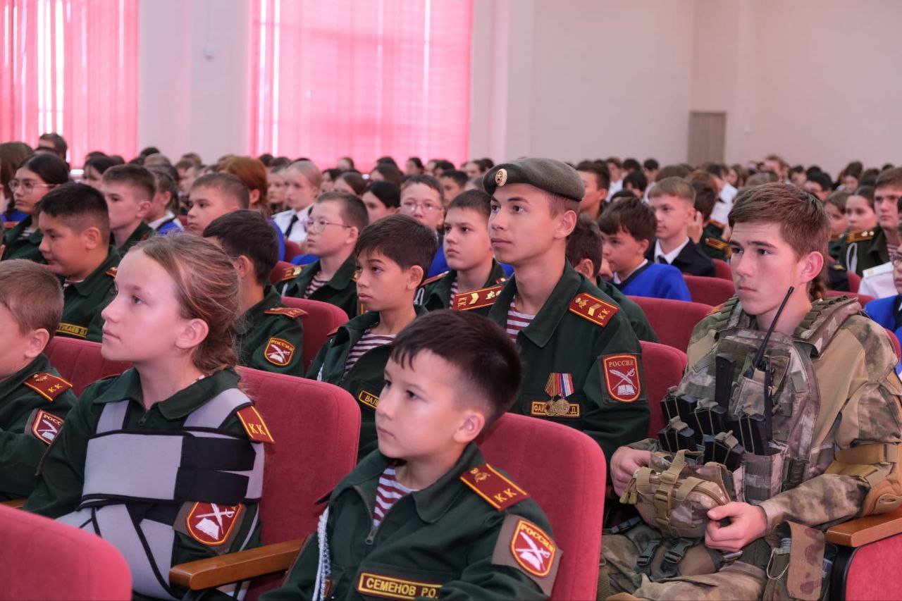 В школе №4 с кадетскими классами им. Д.С. Нагуманова Андрей Юрьевич наградил финалистов спартакиады «Готов служить Отечеству!», посвящённой Году защитника Отечества и 80-летию Победы в Великой Отечественной войне, и вручил ценные подарки победителям. Здесь он встретился с кадетами, рассказал о своих годах учёбы в школе, о важности патриотической работы, которая не только формирует личность, но и является хорошей базой для дальнейшего поступления в высшее военное учебное заведение и службы.