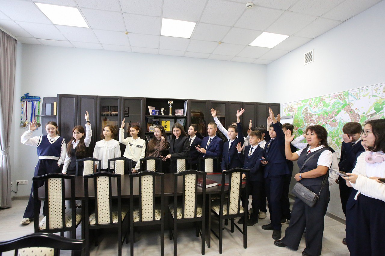 3 октября в мэрии прошла очередная экскурсия для школьников. Экскурсию провела заместитель главы Администрации Гуллярия Ялчикаева. С ребятами также пообщались заместители главы Ильдар Имамов и Денис Ганиев