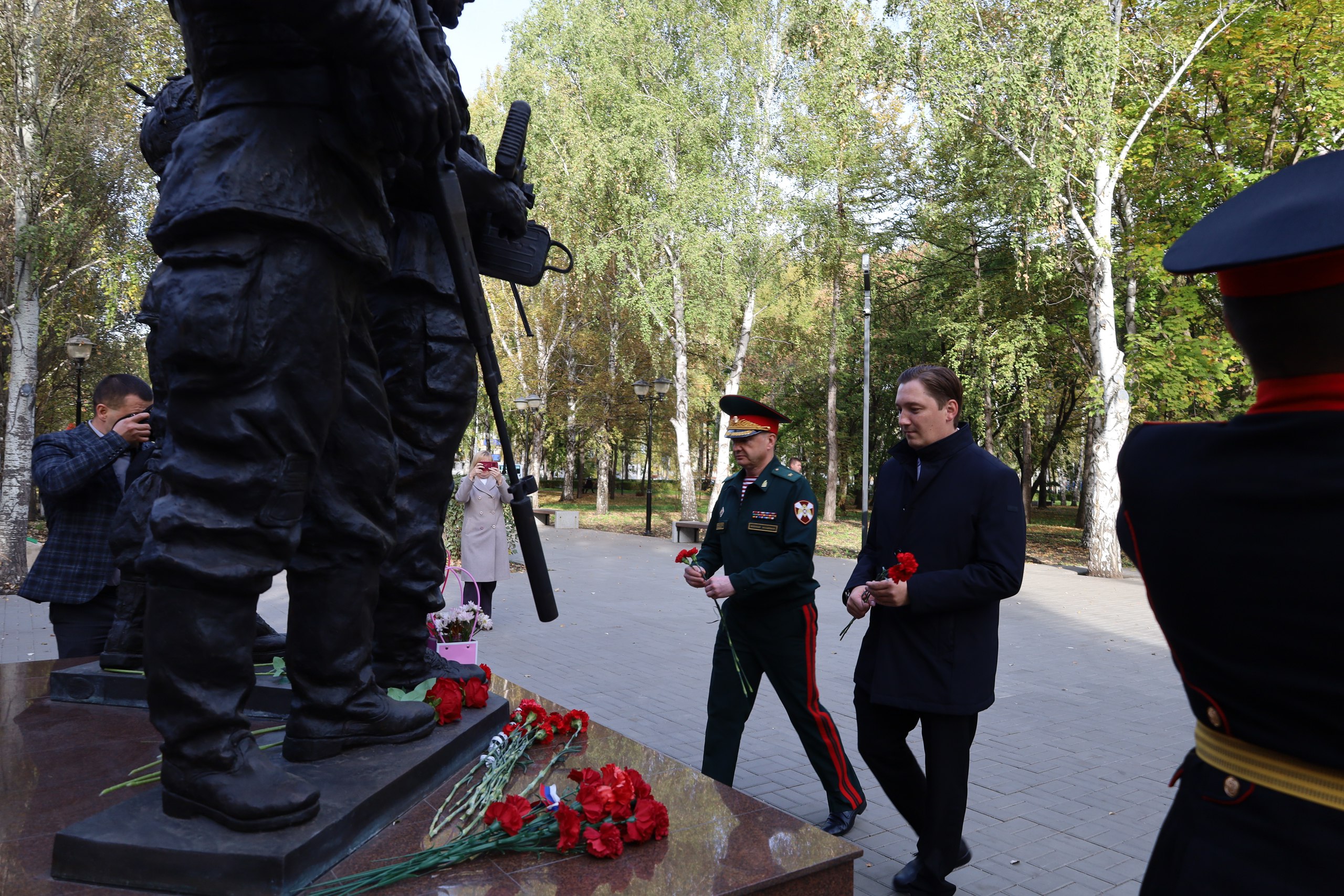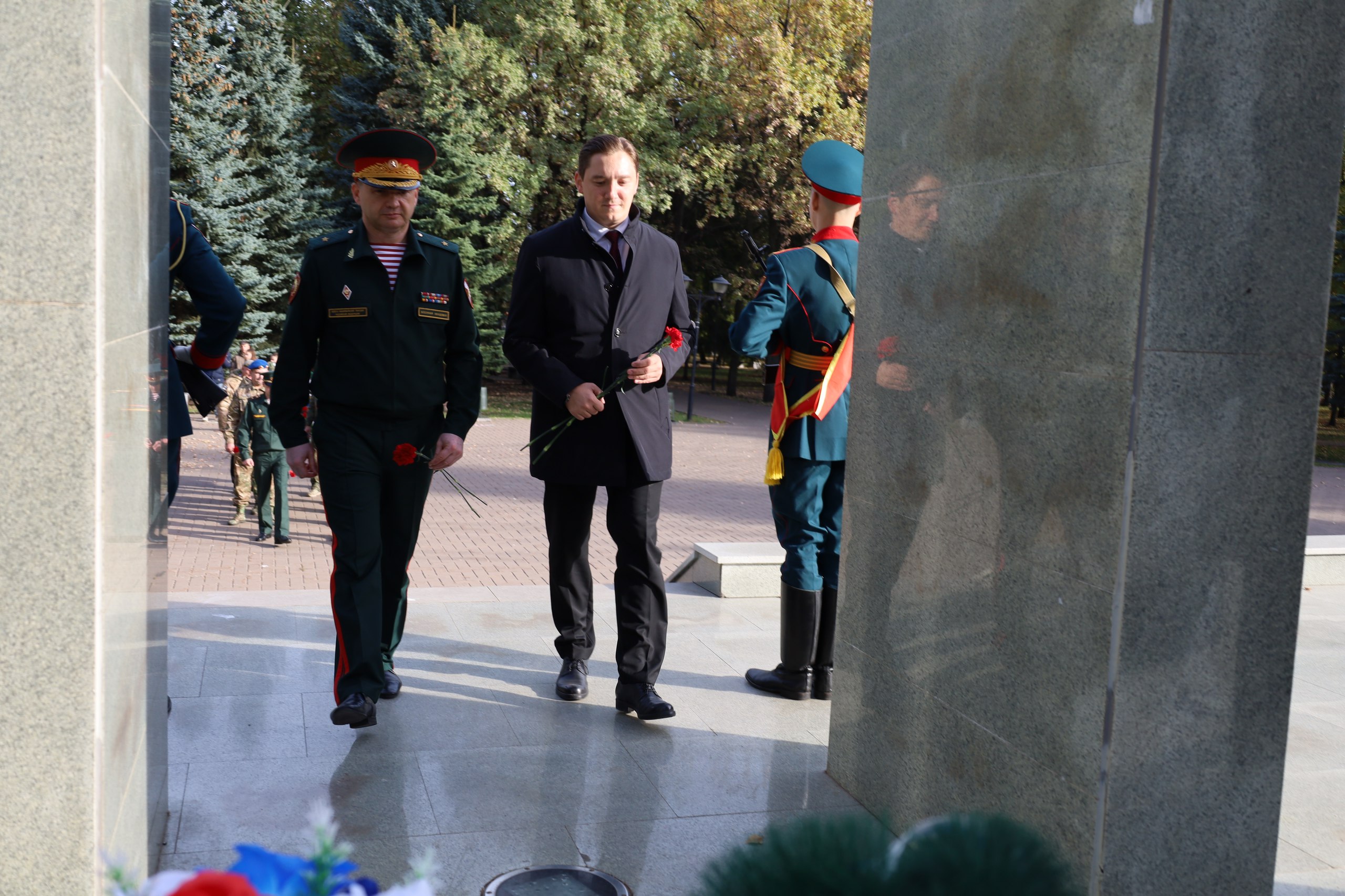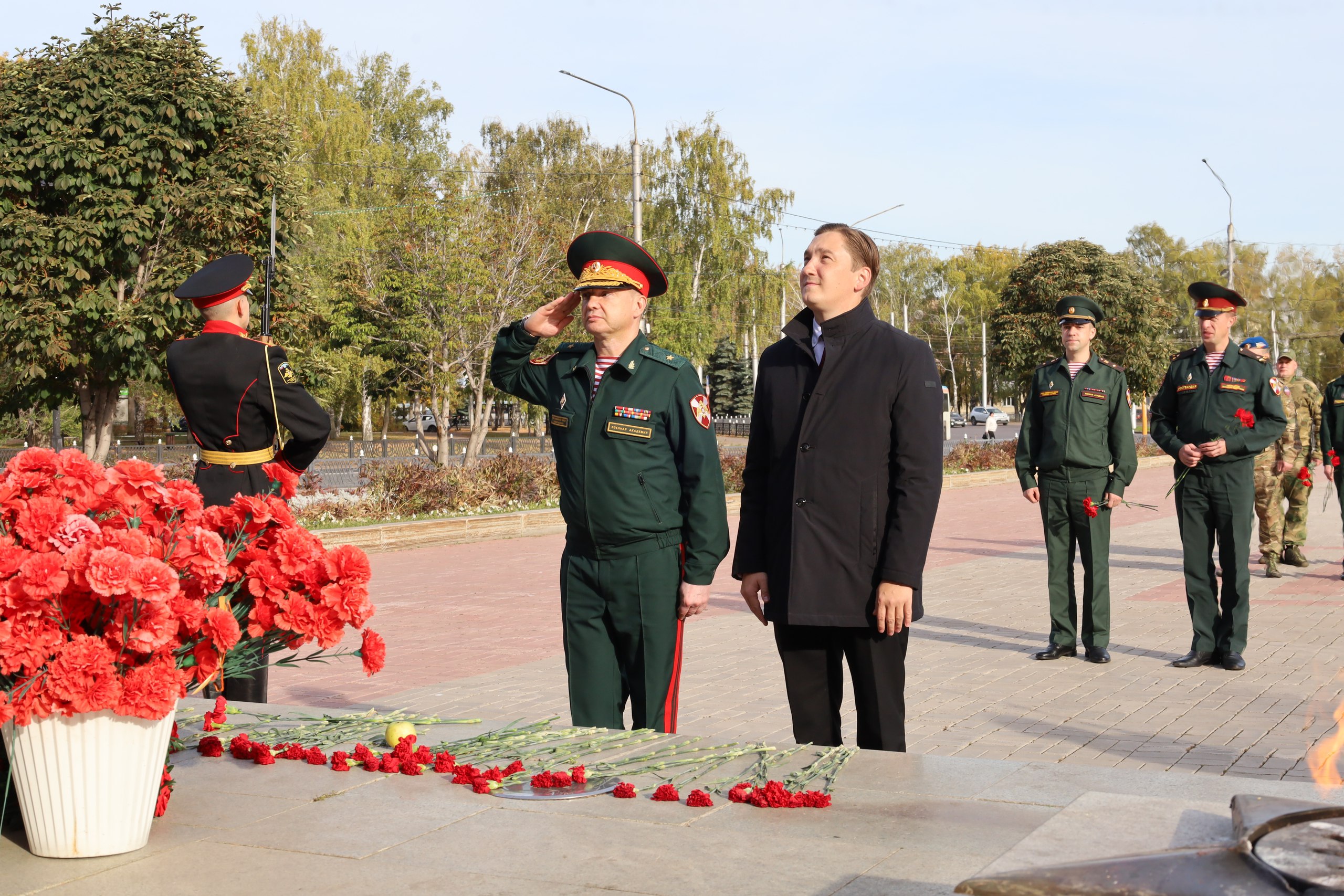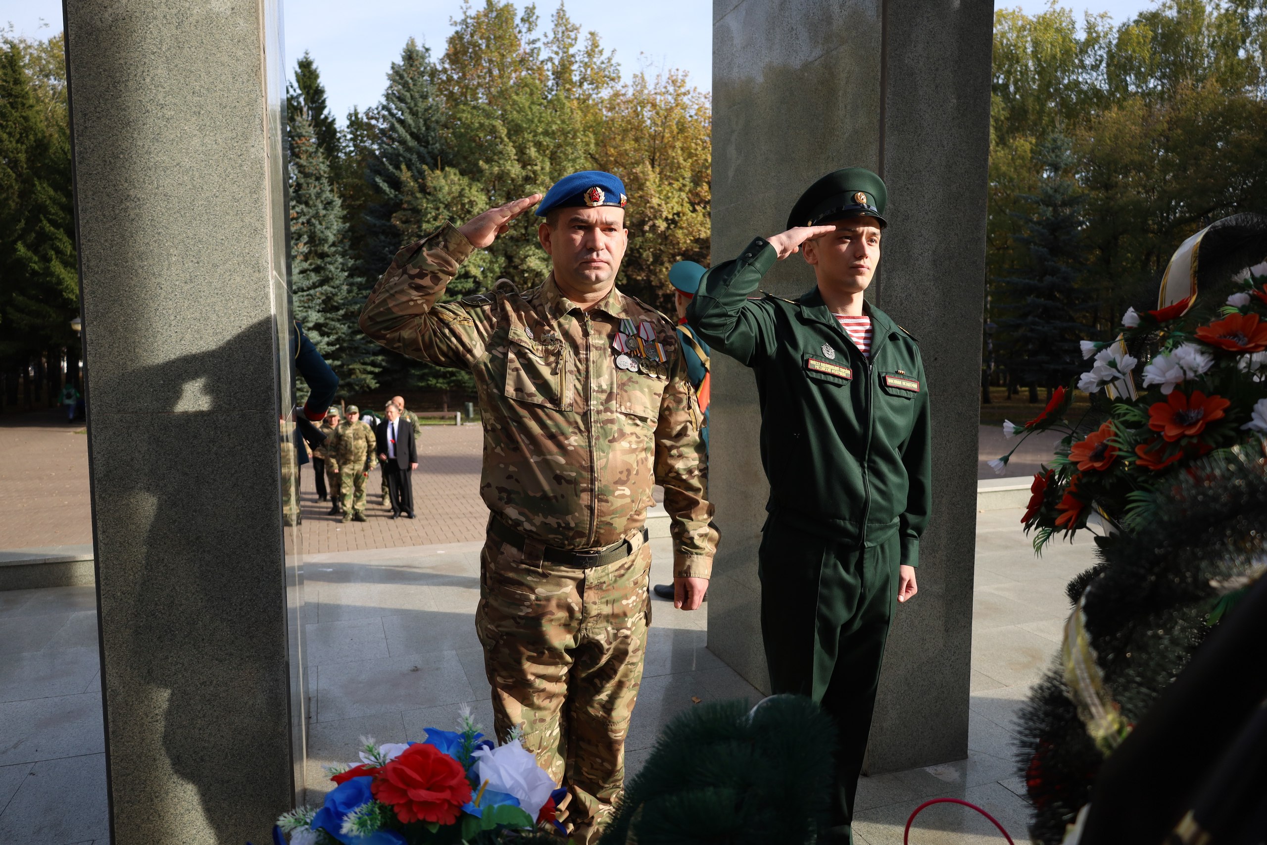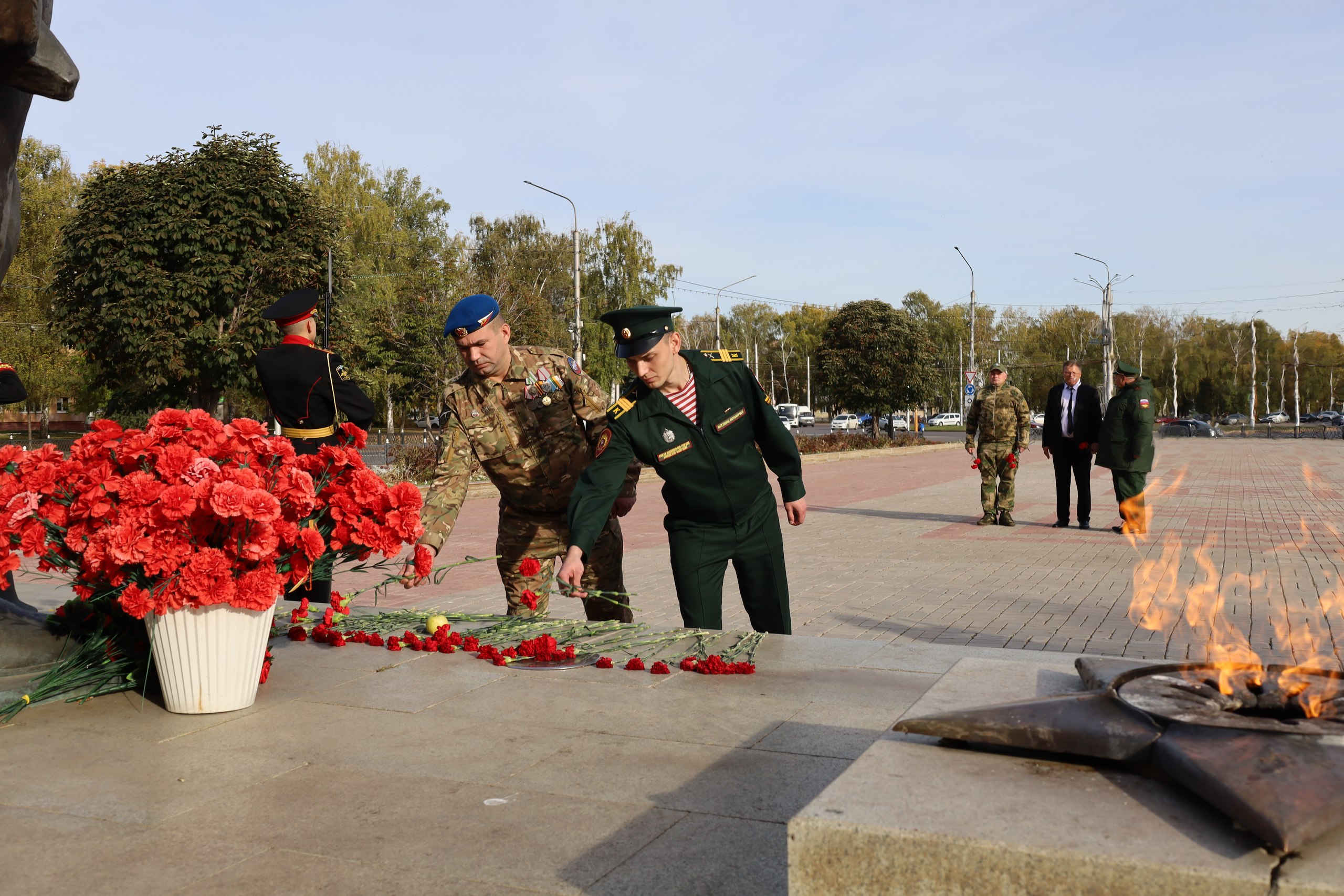 Сегодня в рамках визита начальника военного ордена Жукова Академии Росгвардии, Андрея Юрьевича Кийко в Стерлитамак состоялось возложение цветов в парке Победы к Вечному огню, посвящённому памяти павших героев Великой Отечественной войны, к стеле воинам-интернационалистам и к мемориалу участникам СВО.