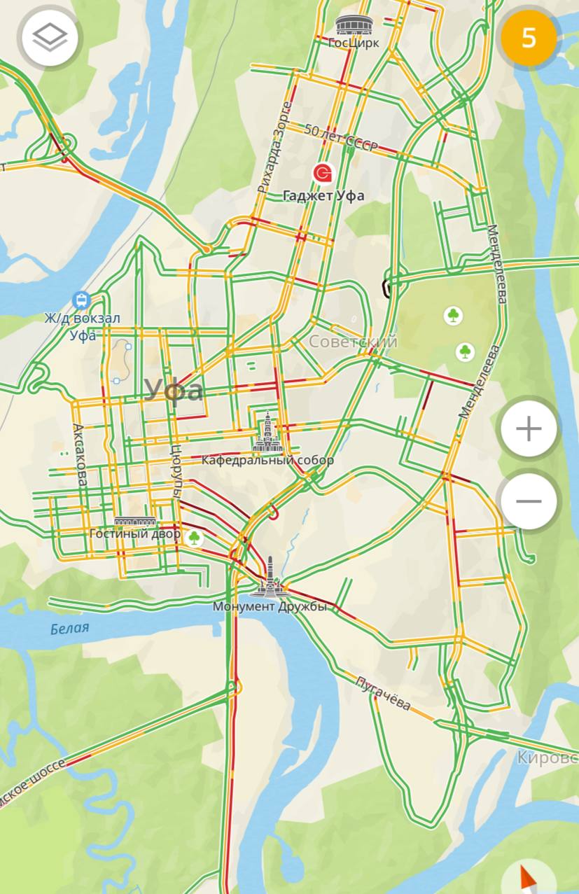 Движение на въезд в Уфу:• со стороны Р-240 движение плотное от ТРК «МЕГА»,• со стороны мкр. Затон движение плотное,• со стороны мкр. Шакша, движение не затруднено,• со стороны ул. Пугачева движение плотное,Движение по основным городским...