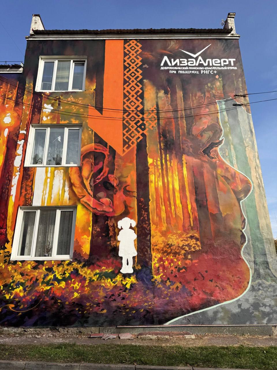 Эта работа создана в поддержку поисково-спасательного отряда «ЛизаАлерт». Название хранит память о трагическом случае, когда жизнь маленькой девочки оборвалась из-за несвоевременно пришедшей помощи. Эта история стала отправной точкой для создания движения добровольцев, решивших больше не оставаться в стороне. За ярким визуальным образом скрывается мощный призыв к действию: «Помочь ей можешь только ты». Он напоминает, что безопасность детей зависит от нашего внимания и неравнодушия.