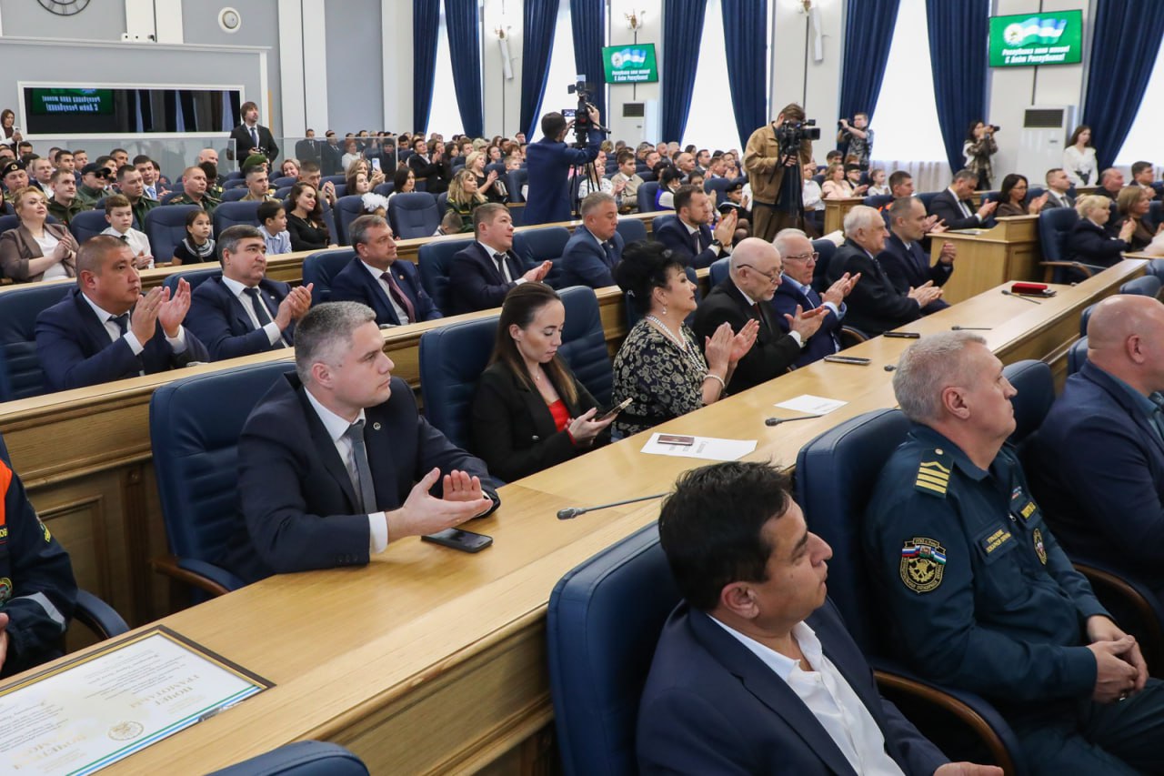 9 октября состоялось торжественное собрание, посвященное Дню Республики Башкортостан. В мероприятии приняли участие Премьер-министр Правительства РБ Андрей Назаров, мэр Уфы Ратмир Мавлиев, министр спорта Республики Афганистан Ахмадуллах Васик, заместитель Председателя Государственного Собрания – Курултая РБ Илшат Тажитдинов, депутаты, участники СВО, муниципальные служащие, руководители промышленных предприятий, учреждений и общественных организаций города