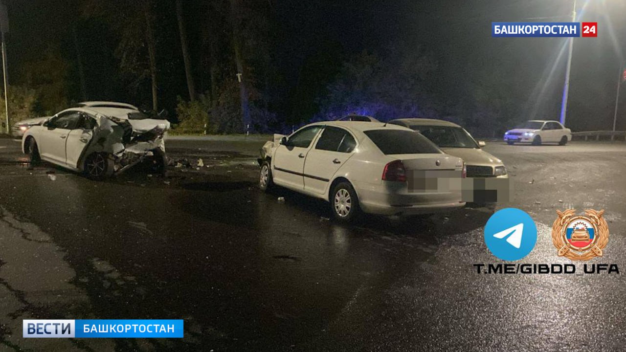 По информации Госавтоинспекции Уфы, водитель автомобиля Skoda проехал на красный сигнал светофора, что привело к столкновению с двумя легковушками на перекрестке.