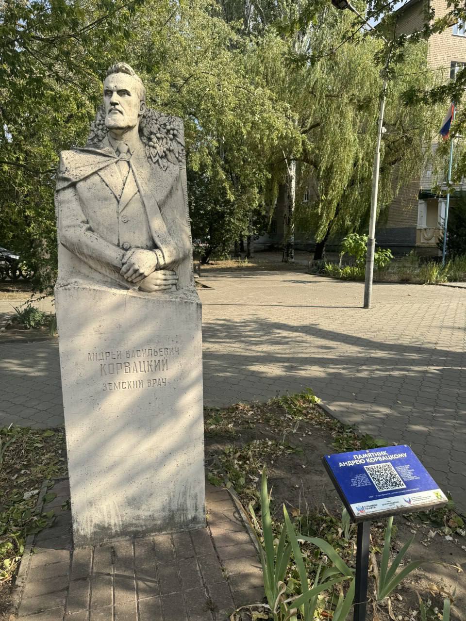 Напротив парка, на проспекте Богдана Хмельницкого, – бюст знаменитого мелитопольца Андрея Корвацкого. Земский врач, садовод, краевед – именно он создал региональный бренд «мелитопольская черешня». Монумент появился в 2005 году и с тех пор стал неотъемлемой частью городского пейзажа.