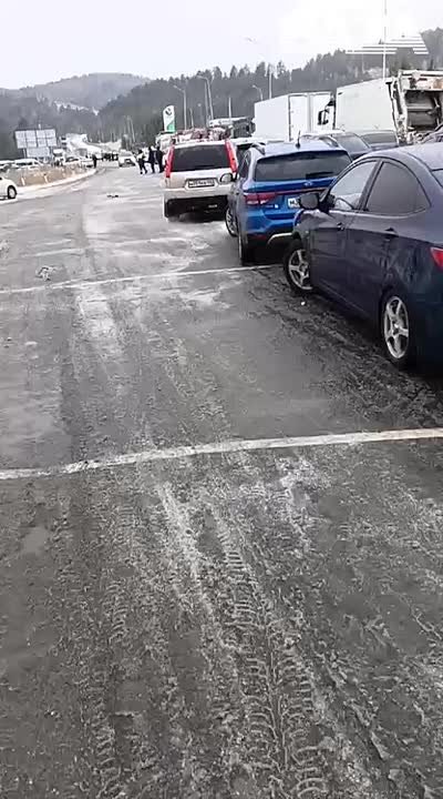 Трасса до Уфы полностью парализована из-за гололёда и снегопада — пробка растянулась на десятки километров. Фуры «проваливаются» на обочине, а легковушки из-за летней резины попадают в ДТП.