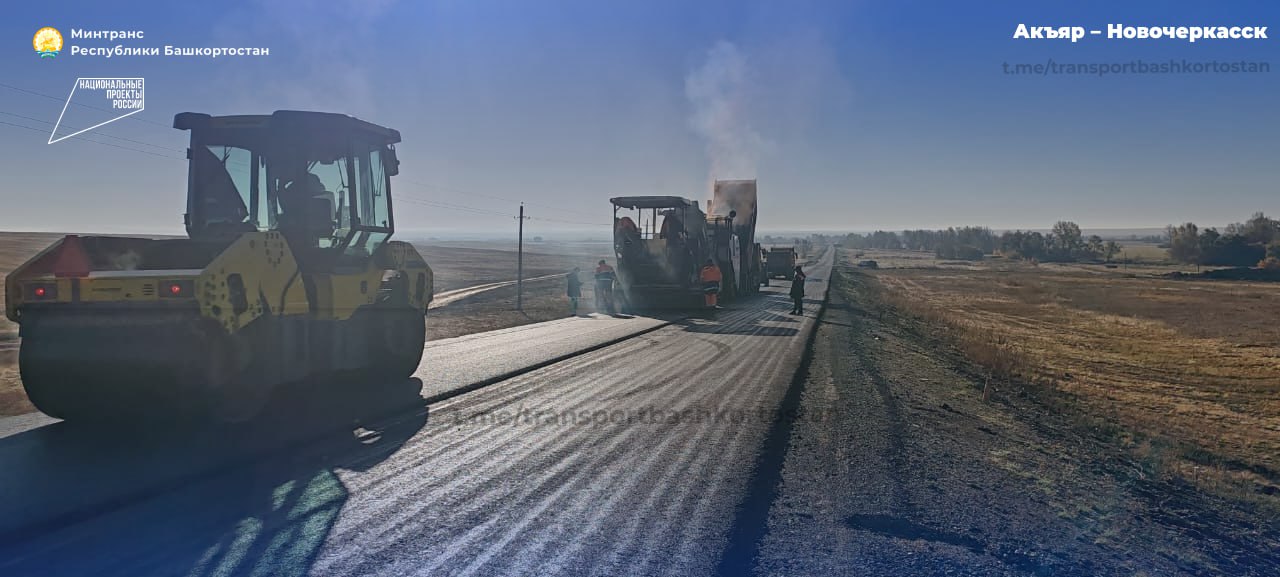 В Хайбуллинском районе Башкортостана приступили к устройству асфальтобетонного покрытия на дороге Акъяр – Новочеркасск – граница Оренбургской области в рамках национального проекта «Инфраструктура для жизни».