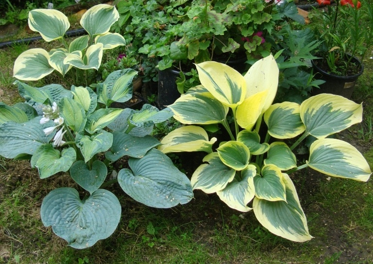 - «Liberty» (Либерти): Высота 80–100 см, жёлто-зелёные листья с тёмной каймой. Яркий контраст сохраняется на протяжении всего сезона.