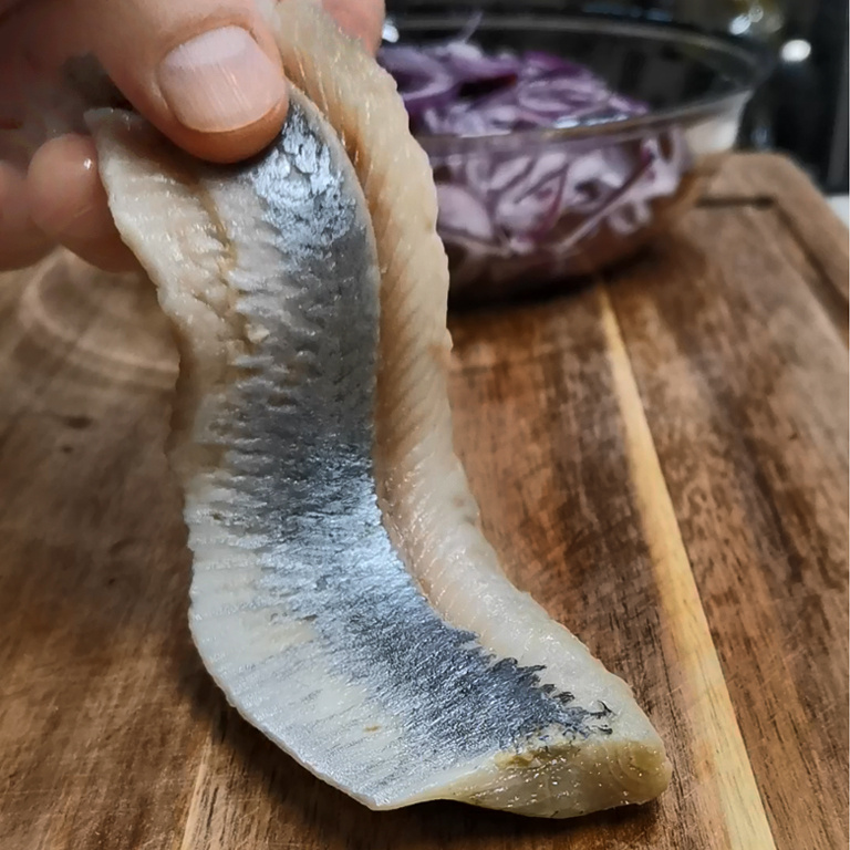 - Селёдка: 100 г - лучше покупать уже подготовленное филе, чтобы избежать необходимости чистить и отделять кости.