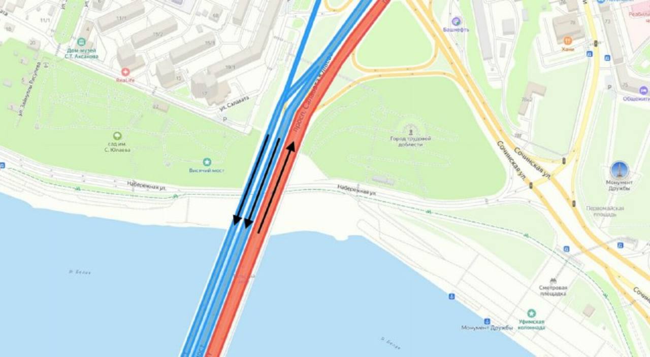 На мосту через Белую в Уфе закрыли реверсивную полосу