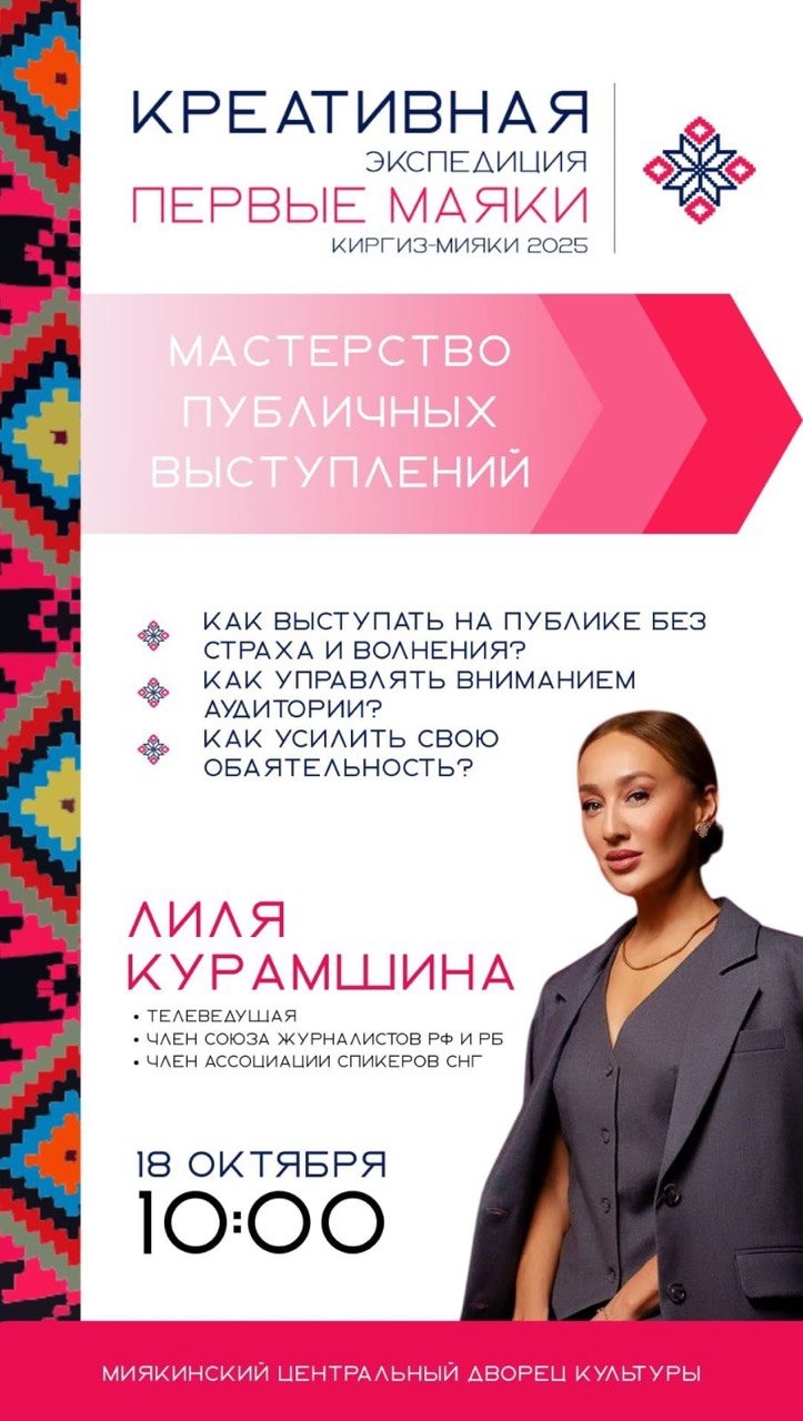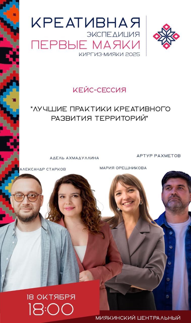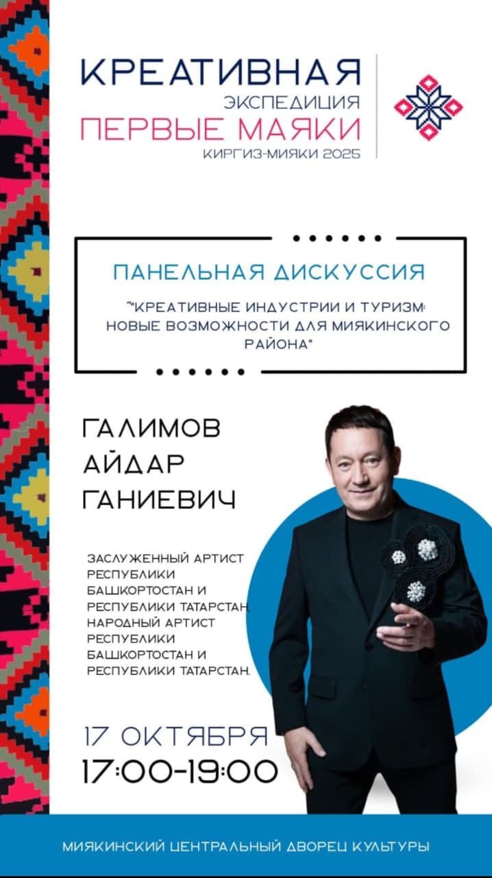 17–19 октября 2025 года в селе Киргиз-Мияки Миякинского района пройдет Креативная экспедиция «Первые маяки». Площадка объединит креативных предпринимателей, талантливых креаторов и амбициозной молодежи Республики Башкортостан. Участникам проекта пространство даст возможность обменяться идеями, опытом по реализации инновационных проектов, объединяющих традиции и современность.