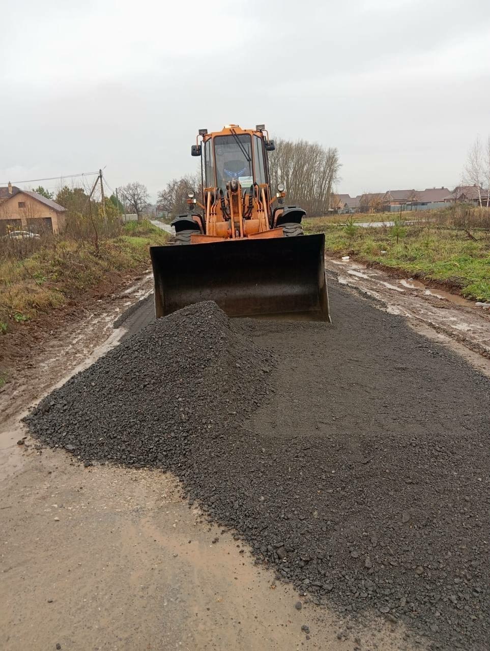 Дорожники отремонтировали дорогу, засыпав её асфальтогранулятом.