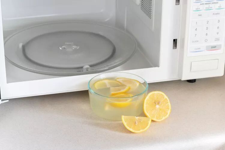 Можно выбрать один из простых рецептов. Первое решение: смешать равные части белого уксуса и воды в глубокой миске. Второе: налить два стакана воды и добавить нарезанный лимон. Обе смеси нужно поставить в микроволновку.